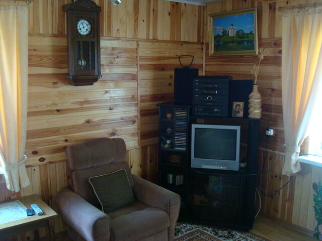 • гостиная (раскладывающийся диван, телевизор, музыкальный центр, печное отопление)