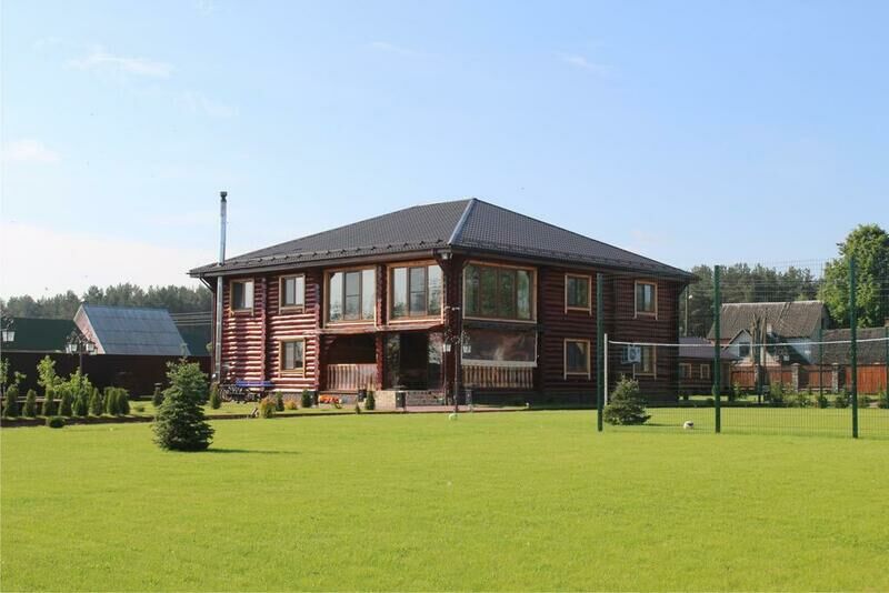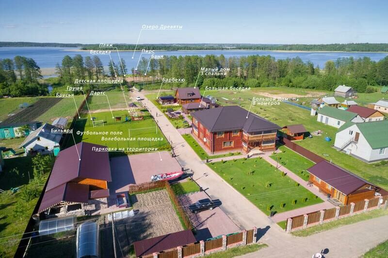 На территории есть волейбольная площадка, которая расположена прямо на траве.