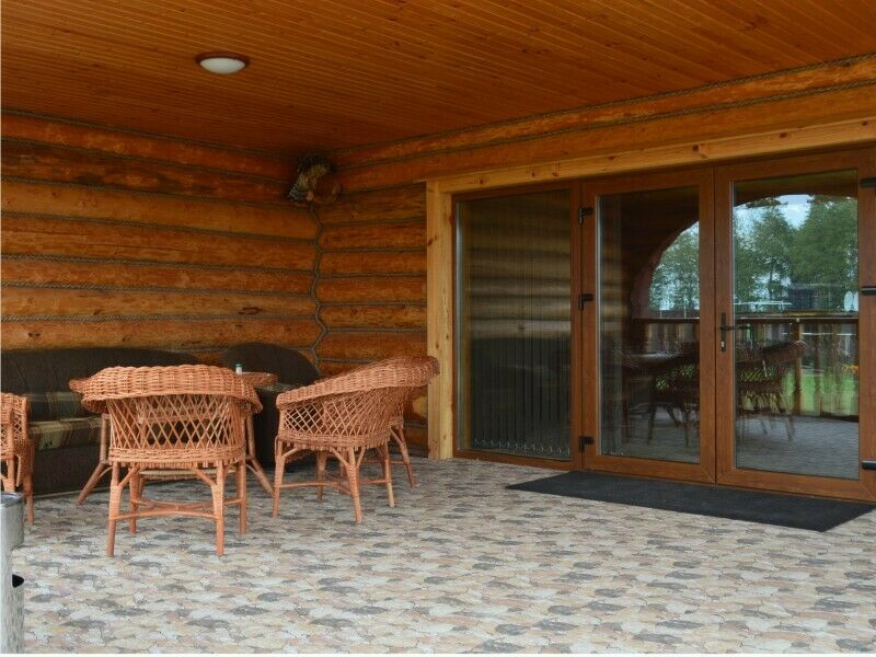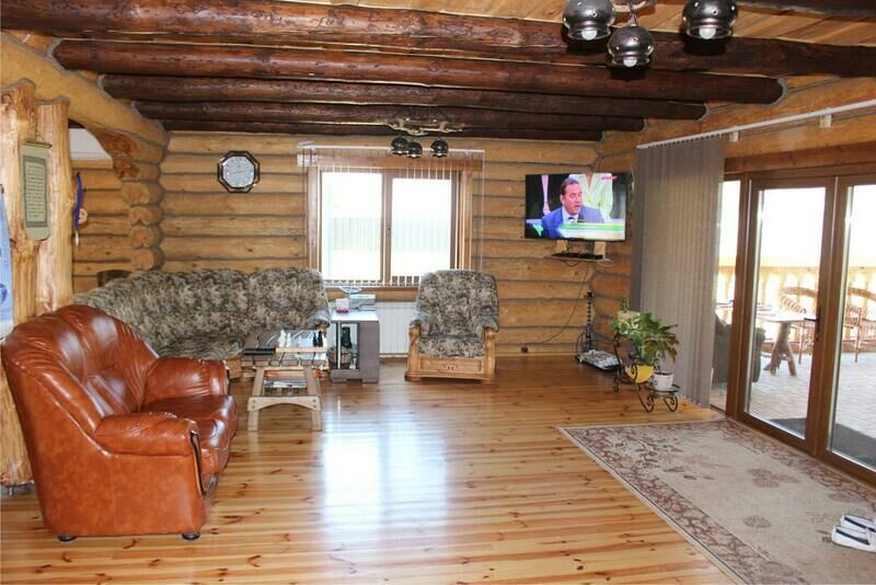 На территории есть отличная русская баня, сделанная в виде бревна.