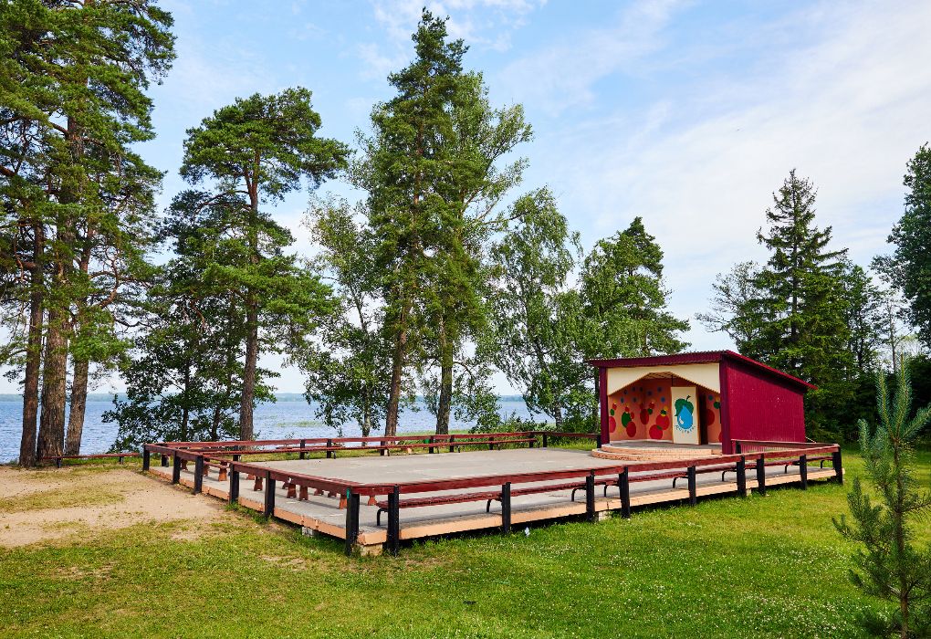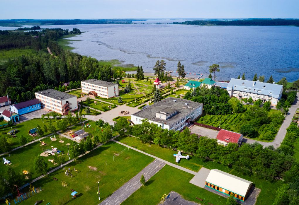 Детский санаторий "Росинка" расположен на территории Миорского района Витебской области. Санаторий находится на полуострове, который обрамляет три озера - Обстерно, Важа и Луша в окружении смешанного леса. На территории санатория произрастают ель, каштан, сосна, береза.
