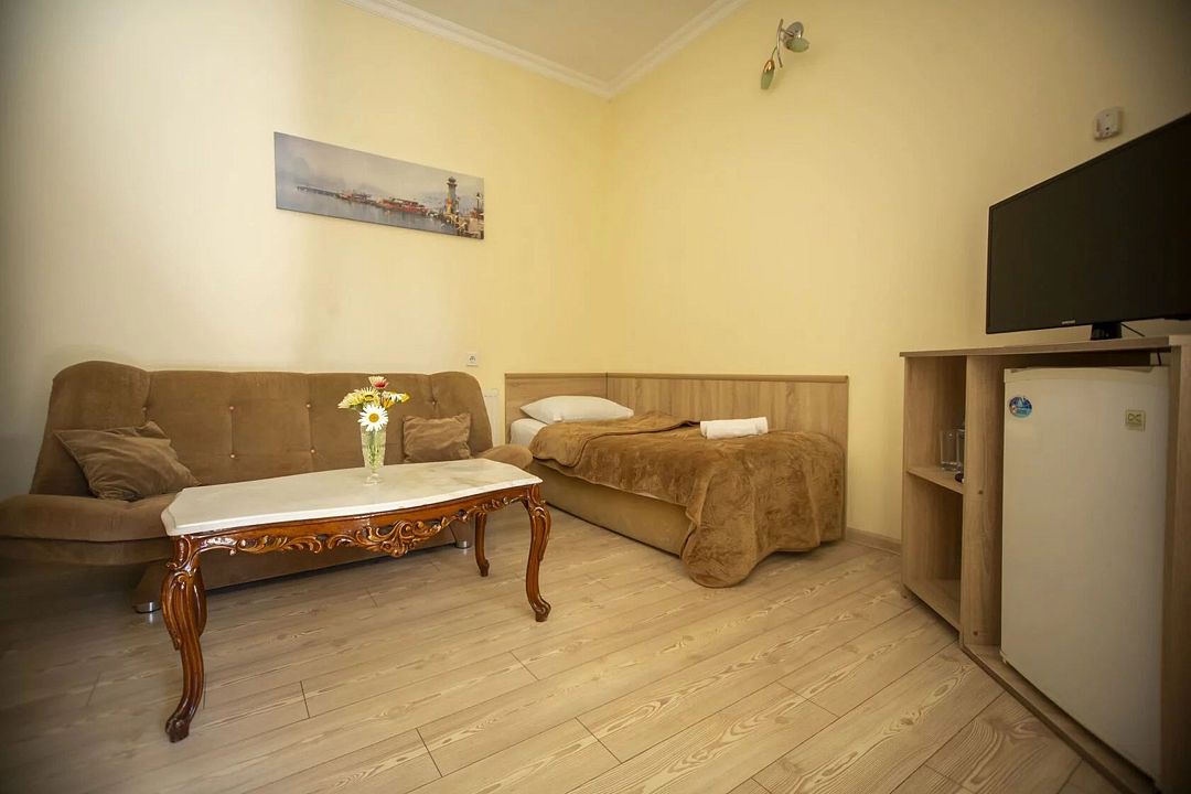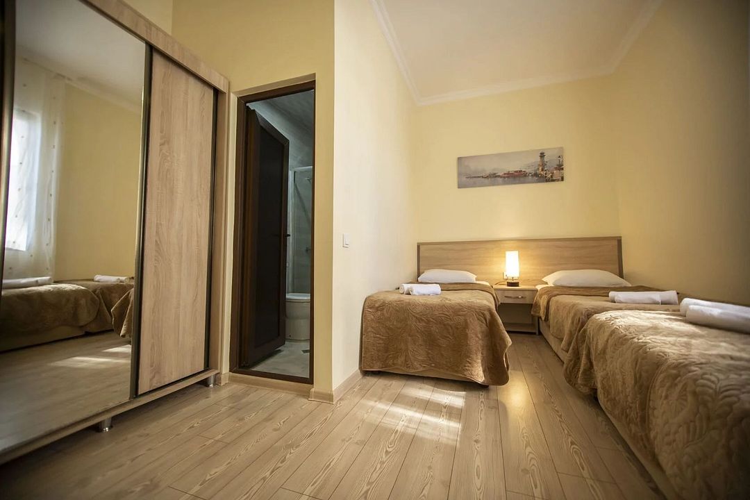 Просторный, светлый номер, в котором все продумано для комфортного проживания с большим балконом, с видом на горы и море. Уборка каждый день.
