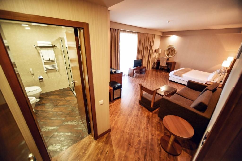 Этот отель расположен всего в 2 минутах ходьбы от частного пляжа. К услугам гостей аквапарк, 4 бассейна и ресторан традиционной кухни. Во всех номерах есть меблированный балкон с красивым видом и доступен бесплатный Wi-Fi. Прогулка до Ботанического сада Батуми занимает 15 минут.