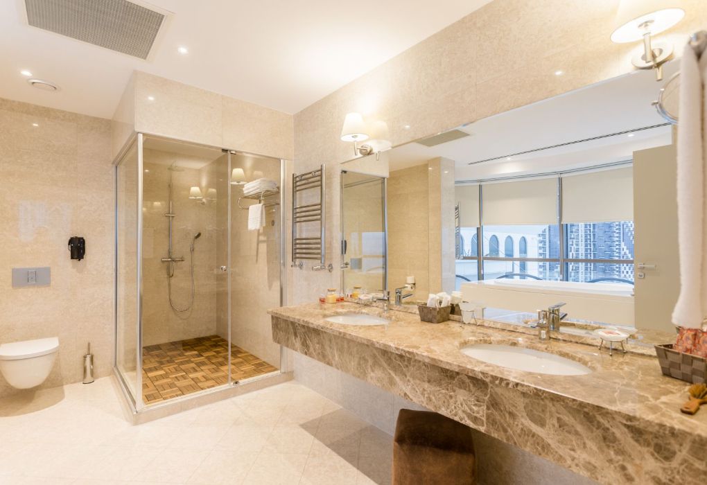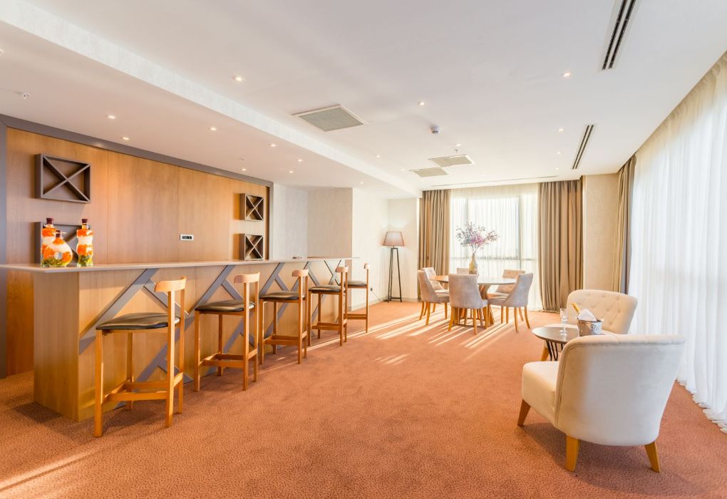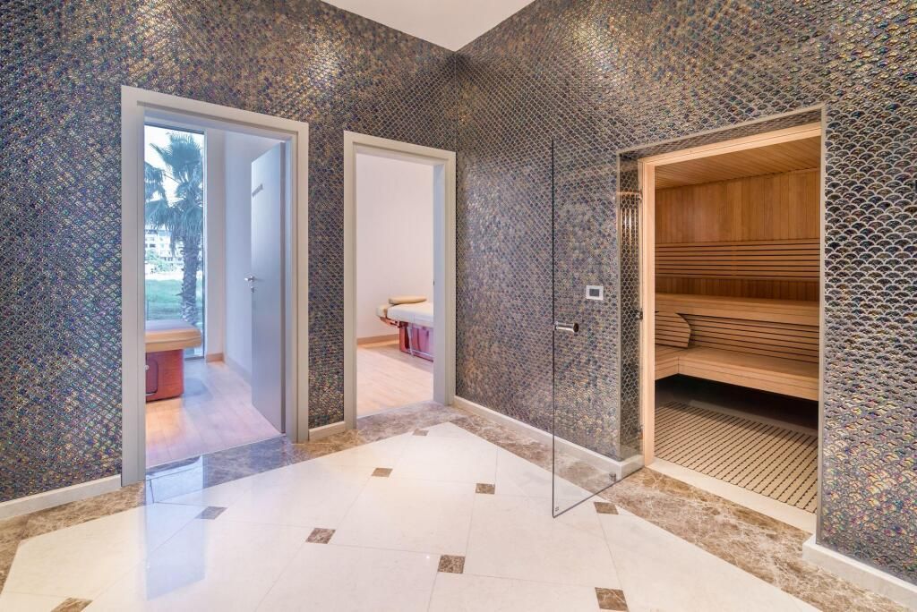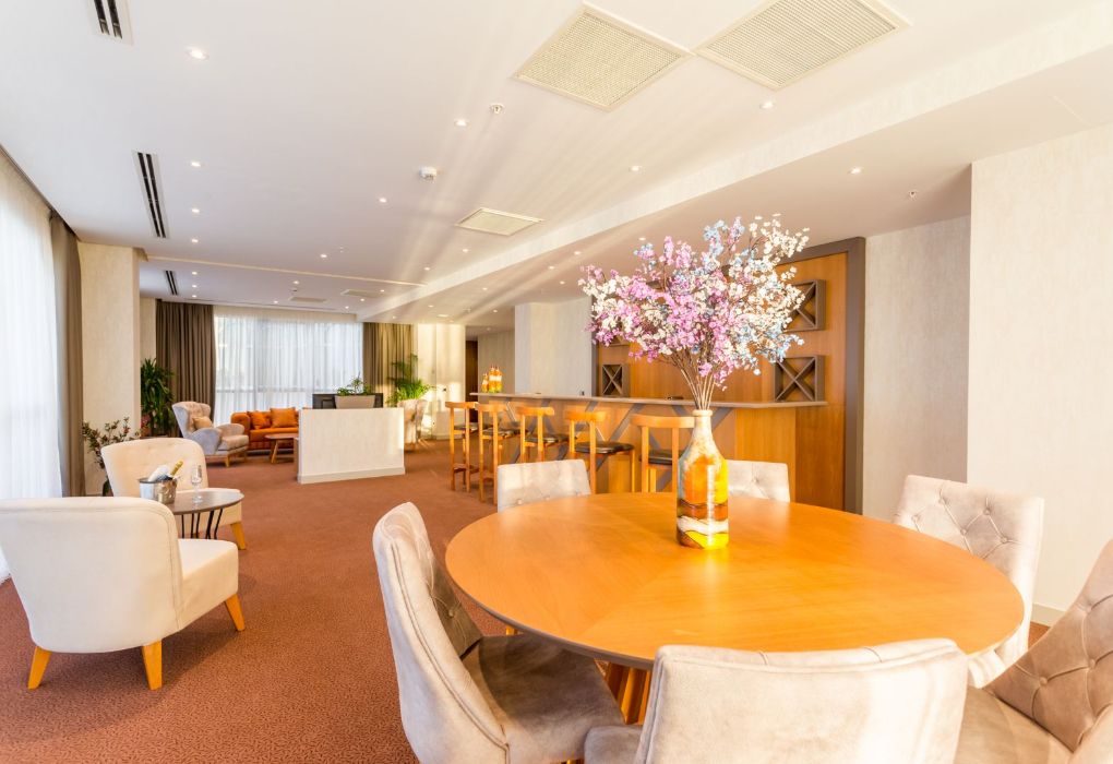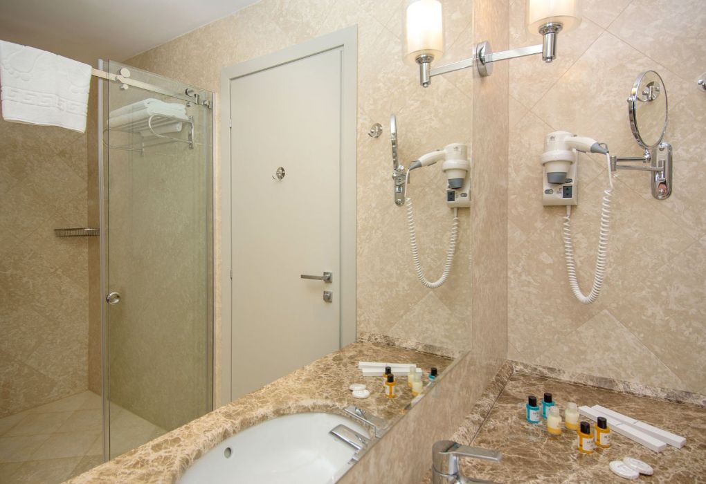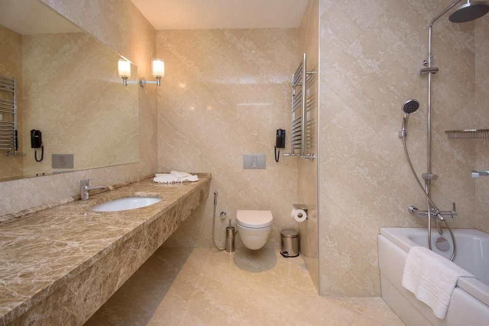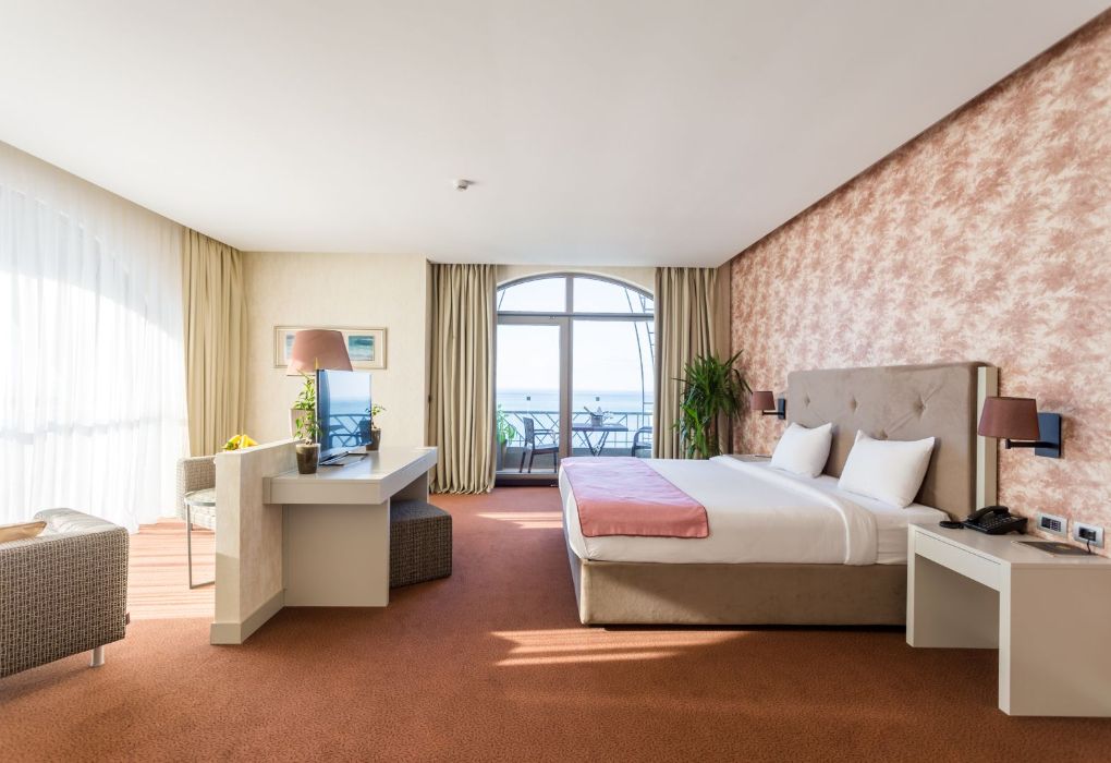 Президентский сьют содержит 2 спальни, столовую, гостиную и рабочую зоны, туалеты, две террасы, частный бассейн и джакузи. Из номера открывается вид на море и город.Услуги и удобства