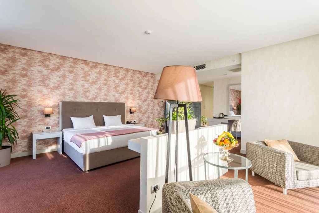 Если вы путешествуете на машине, припарковаться можно будет на парковке рядом. Среди услуг для красоты и здоровья — массажный кабинет, сауна и паровая баня. Любителям спорта подготовили тренажёрный зал и настольный теннис. Скучно не будет, ведь в отеле к услугам отдыхающих развлекательные мероприятия.