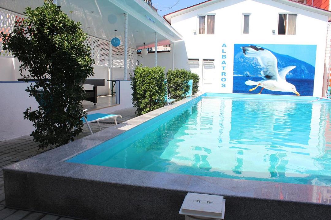 Гостиница Альбатрос пользуется большой популярностью как в Грузии, так и за границей. Особенную красоту гостиничного комплекса представляют два открытых плавательных бассейна и вокруг них - бар, где гости могут попробовать наилучшие напитки и современные коктейли, насладиться приятной музыкой.