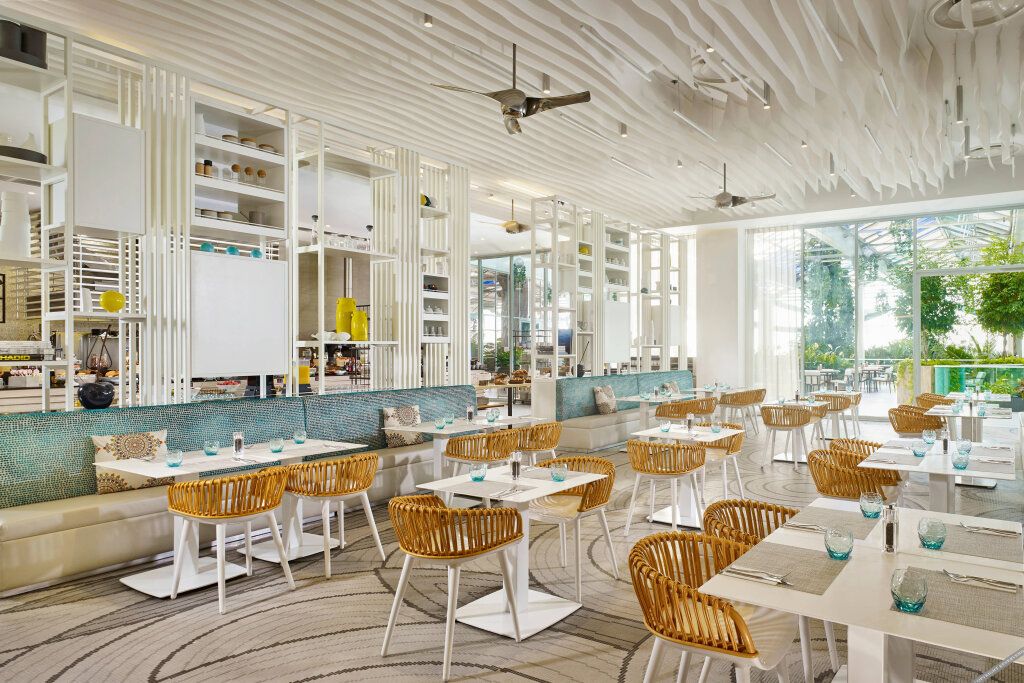 В ресторанах и барах отеля готовят разнообразные блюда европейской и местной кухни, а также вегетарианские и веганские блюда. По утрам для гостей сервируют завтрак «шведский стол».