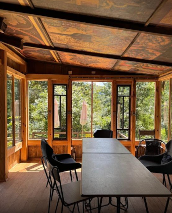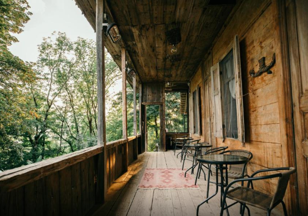 Тент с балконом и с красивым видом из окна