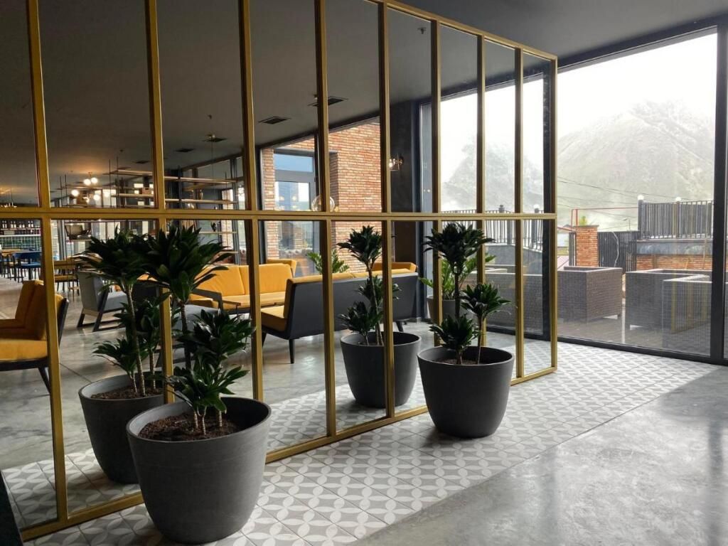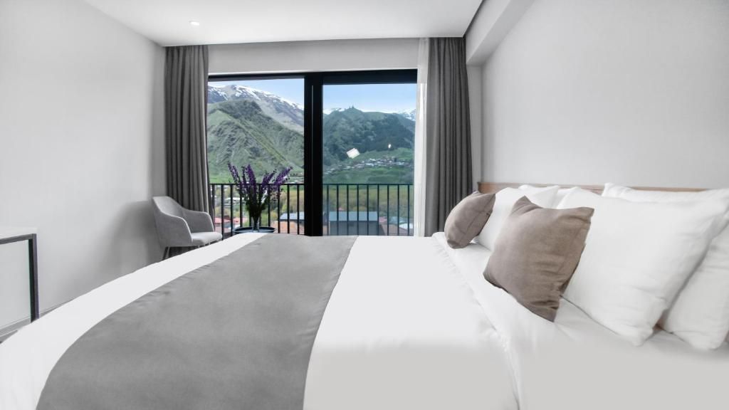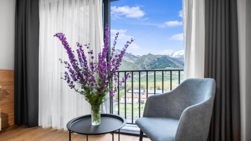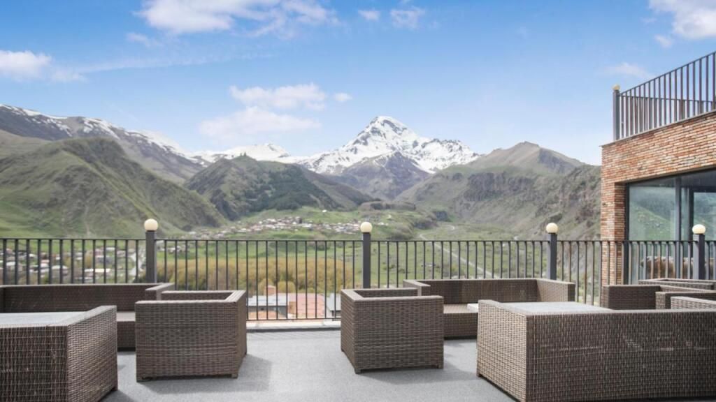 Гостиница на 35 номеров с террасой с панорамным видом, частной парковкой. Из большинства номеров открывается вид на Гергетскую Троицу и Мкинварцвери.