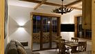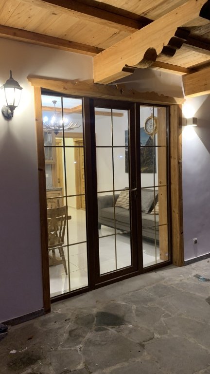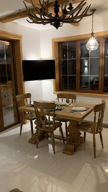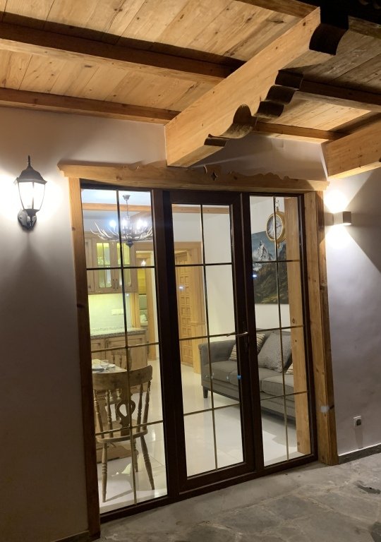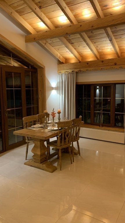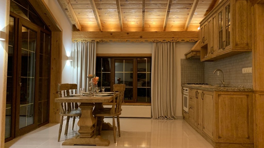 Дизайн Шале как снаружи, так и внутри выполнен в традициях альпийской Франции-Австрии и Швейцарии , каждый элемент экстерьера выполнен в традиционном стиле Горное Шале. Мебель из натурального вощеного дерева а элементы декора из шерсти, хлопка и льна придают дому особый уют и комфорт наивысшего класса. Интерьер дома выполнен плотностью из натуральных экологически чистых материалов ,вся мебель, кухня выполнены из натурального массива каштана.