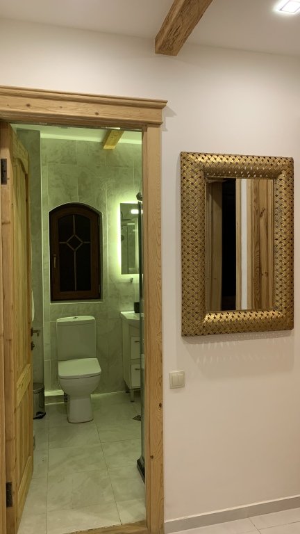 В доме независимые апартаменты на первом и втором этаже, включающие в себя кухню-гостиную, укомплектованную бытовой техникой и посудой, санузел, по две спальни на каждом этаже: спальня с одной кроватью и спальня с раздельными кроватями. На каждом этаже свой санузел. На каждом этаже расположен балкон.