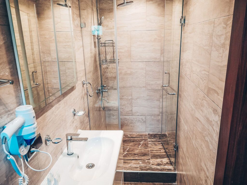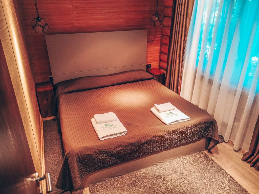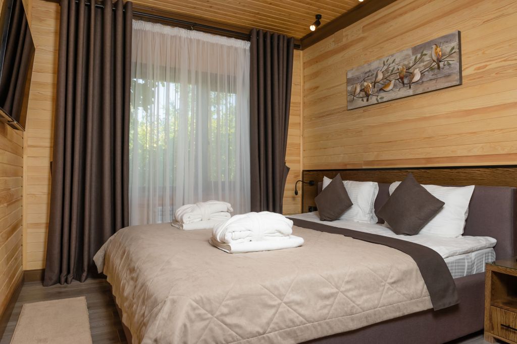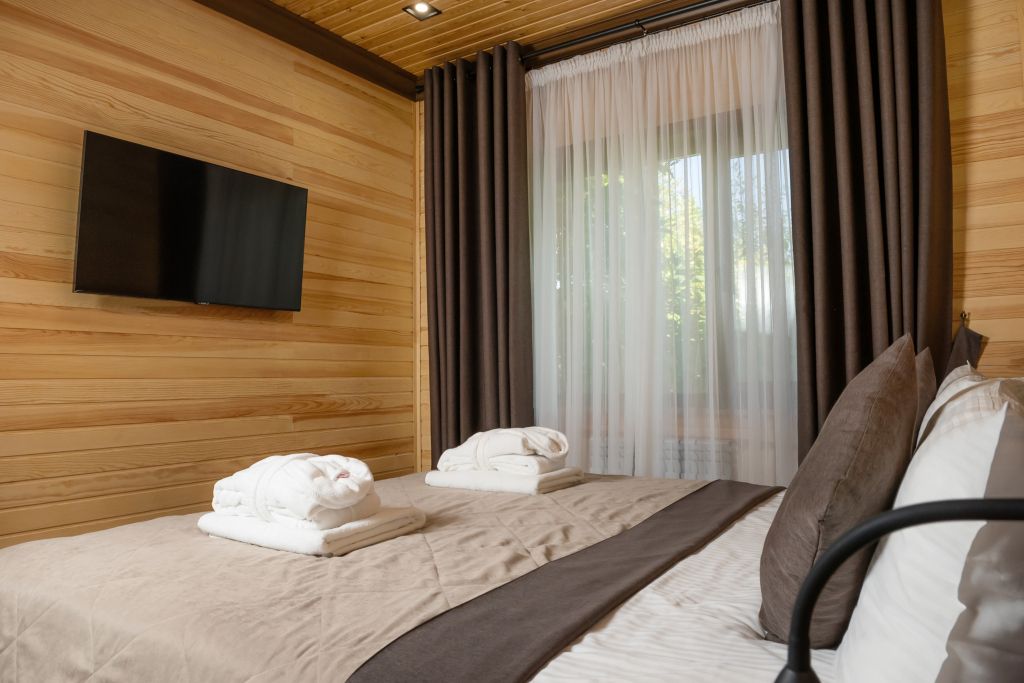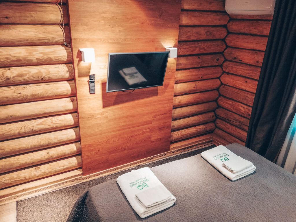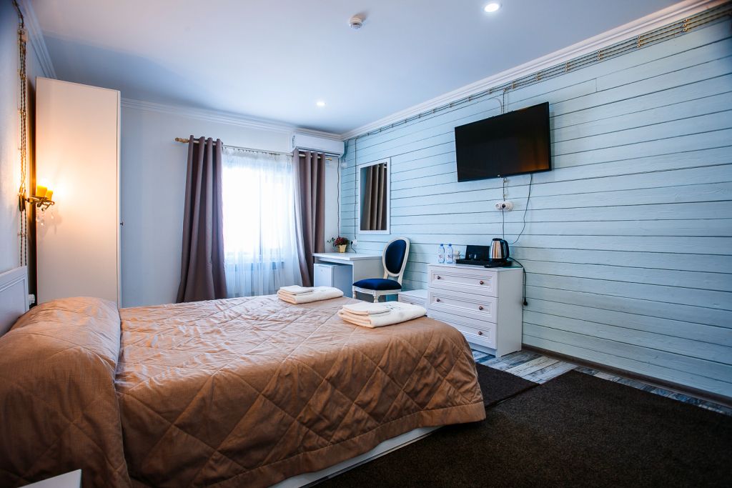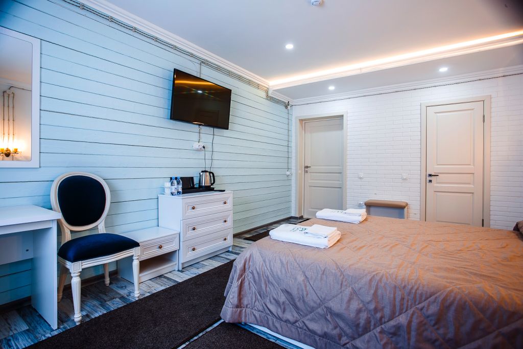 Номер уютно обставлен и оснащён необходимым, чтобы отдохнуть после долгого и насыщенного дня. Имеются телевизор и халат. Перечисленные услуги есть не во всех номерах.