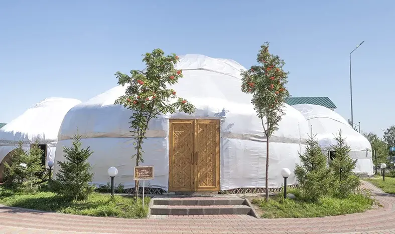 Юрты на территории выполнены по всем традициям и обычаям наших предков, в них вы сможете окунуться в атмосферу быта казахского народа. А главная юрта имеет настоящий трон Хана.