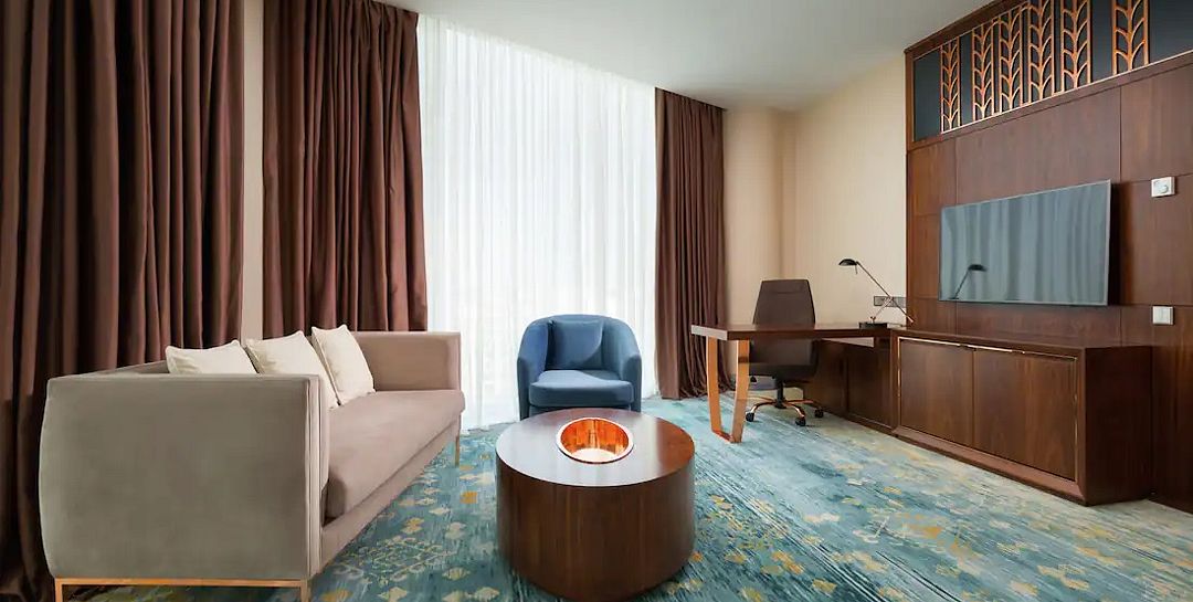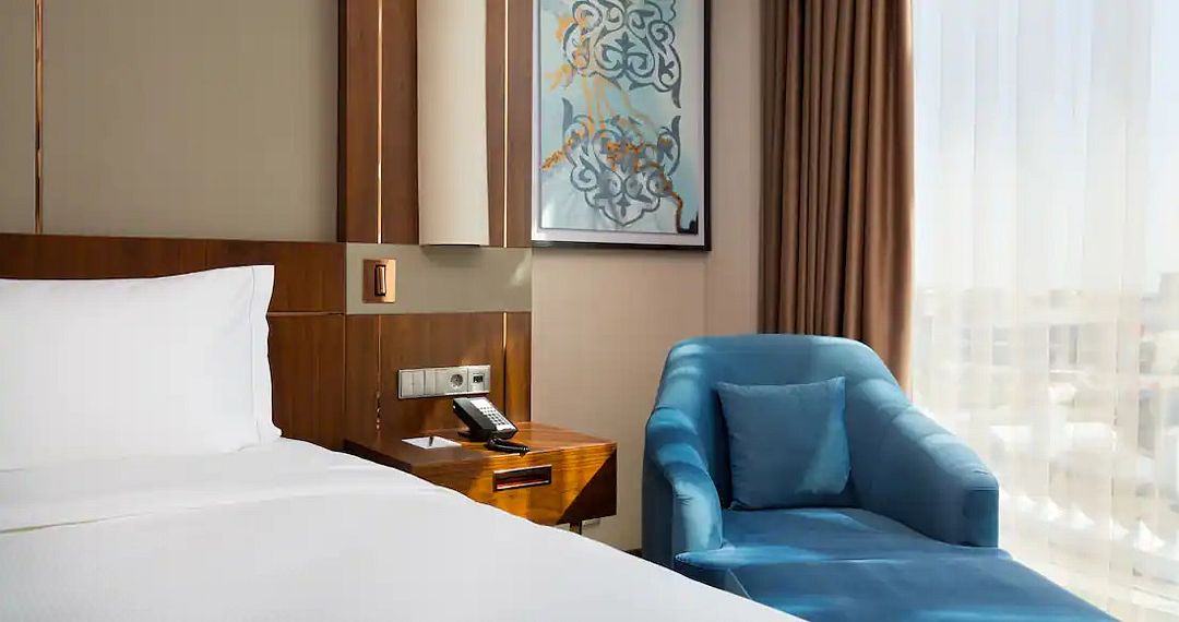 Пятизвездочный отель всемирно известной гостиничной сети Hilton находится на территории выставочного комплекса «ЭКПО-2017» в столице Казахстана — городе Нур-Султане. В шаговой доступности — ботанический сад, ледовый Дворец Спорта и стадион «Астана арена». До центра города, городского парка, основных достопримечательностей, монумента «Астана Байтерек» торгового центра «Хан Шатыр», выстроенного в виде большого шатра, Дворца Мира и Согласия можно доехать за 20 минут.