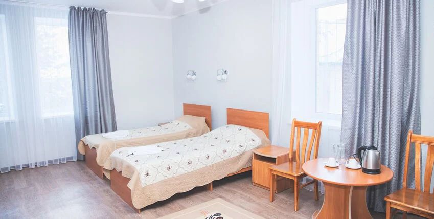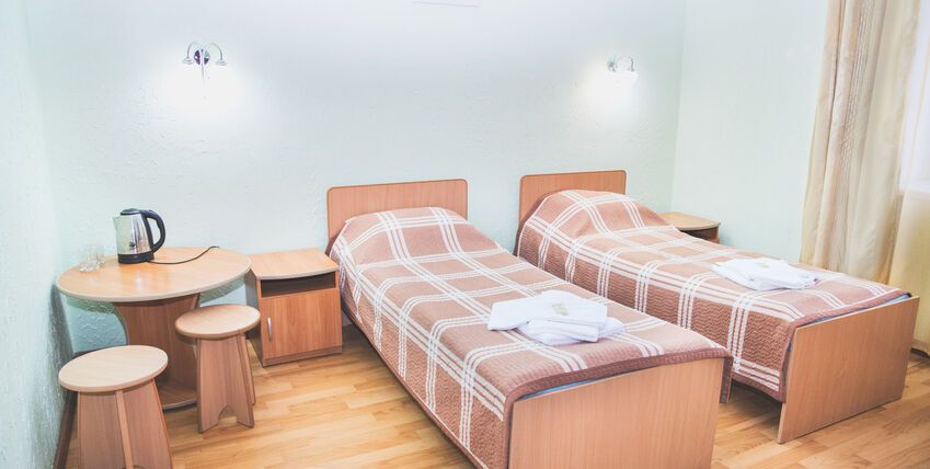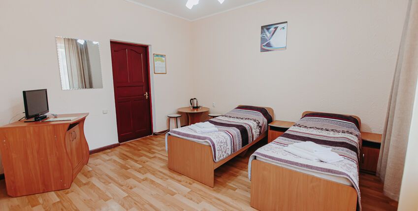 Одна комната, односпальные кровати, прикроватные тумбы, Wi-Fi, плательный шкаф, журнальный столик, спутниковое телевидение, холодильник, душевая кабина, сан.узел.