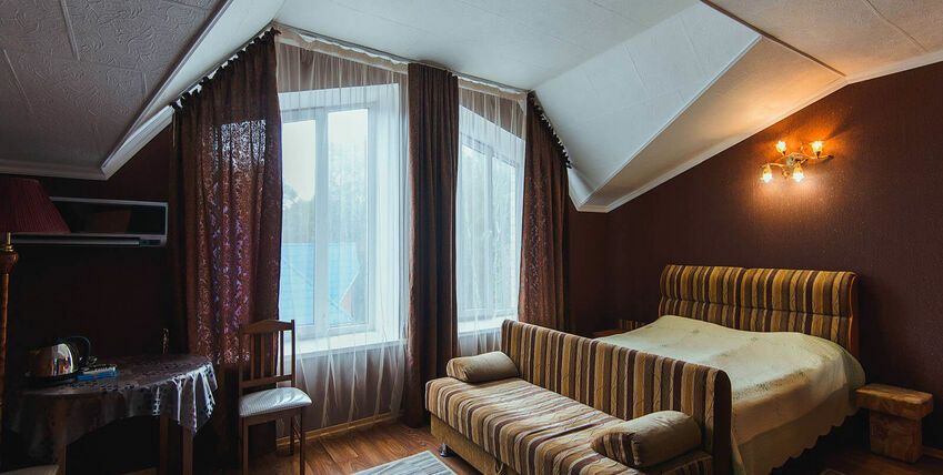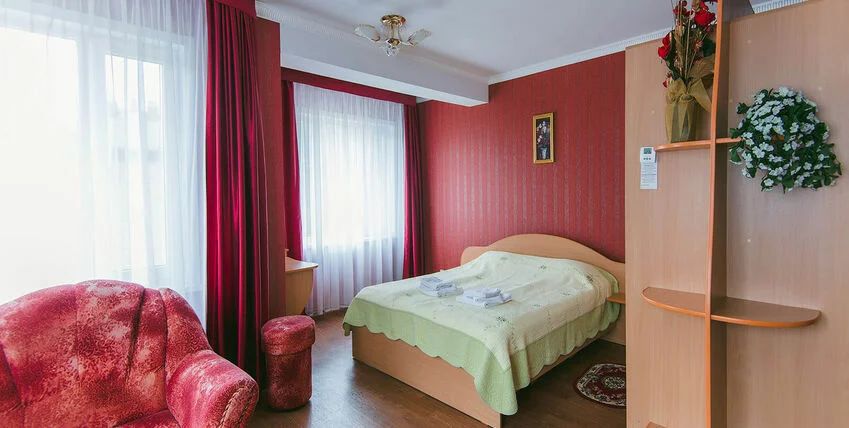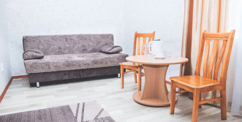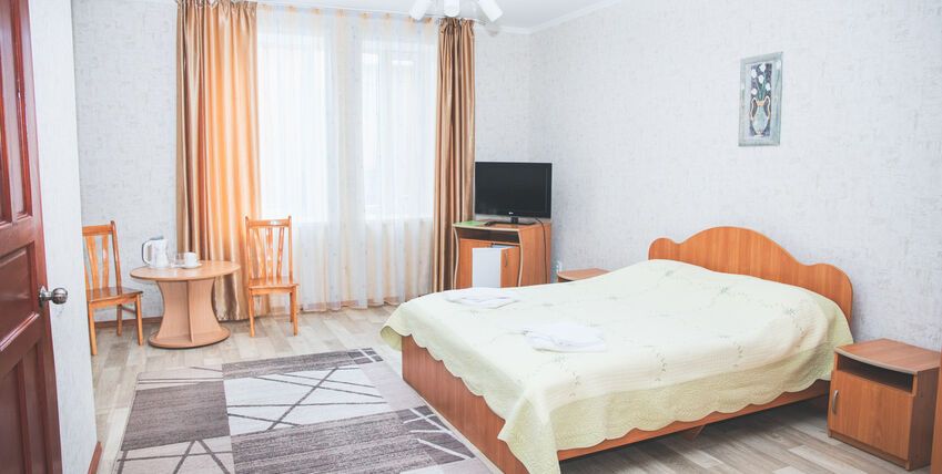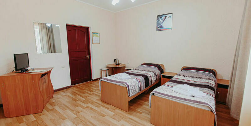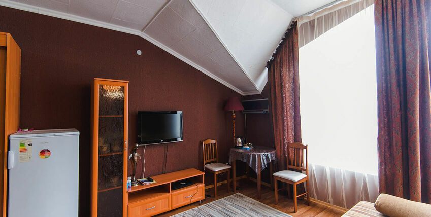 Одна комната, односпальные и двухспальная кровати, мягкая мебель, журнальный столик, Wi-Fi, спутниковое телевидение, чайный сервиз, электрический чайник, холодильник, душевая кабина, сан.узел.