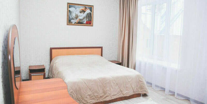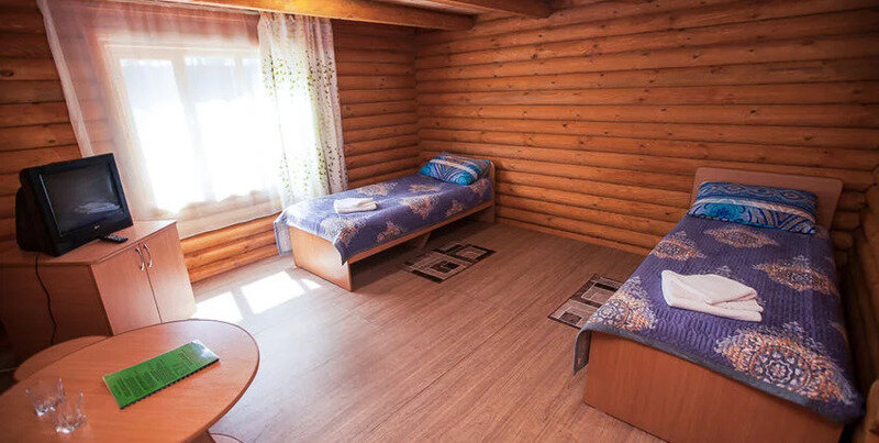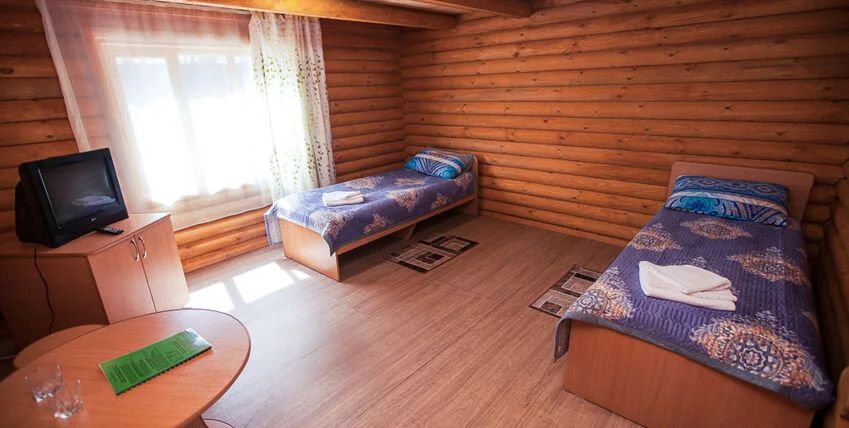 Одна комната, односпальные и двухспальная кровати, мягкая мебель , журнальный столик, Wi-Fi, спутниковое телевидение, чайный сервиз, электрический чайник, холодильник, душевая кабина, сан.узел.