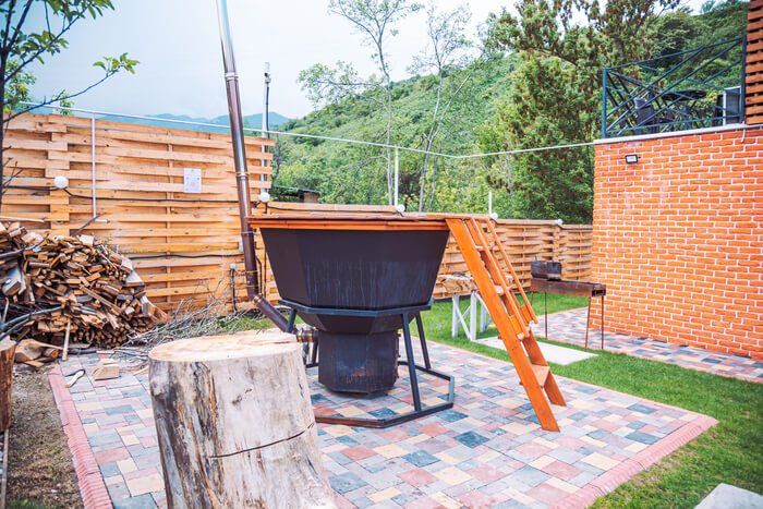 - Чан для парения на свежем воздухе. В этом и заключается колоссальная разница с баней — в процессе парения вы дышите свежим воздухом и не перегреваете голову;