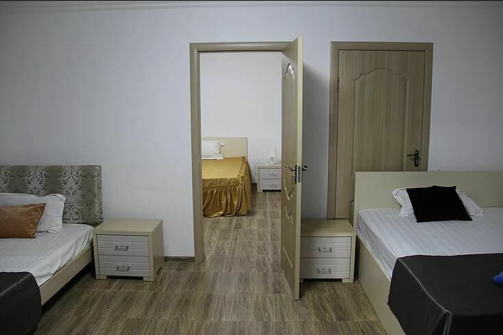 - Семейный пятиместный (три односпальные и одна двуспальная кровать)