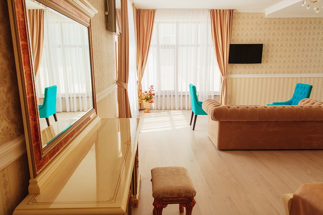 - Для вашего комфортного проживания номер оборудован кондиционером, телефоном, спутниковым телевидением, сейфом, раскладной софой.