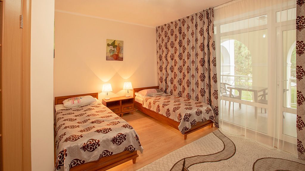 Для расположения гостей предлагаются номера разного уровня комфорта и вместимости, семейные коттеджи, а также изысканные апартаменты для тех, кто предпочитает роскошь и комфорт. Все комнаты полностью мебелированы, в них есть телевизор, кондиционер, Wi-Fi. Санузел индивидуальный, с душем, полотенцами, туалетными принадлежностями. В семейных коттеджах и апартаментах предусмотрена обустроенная кухонная зона для самостоятельного приготовления еды.