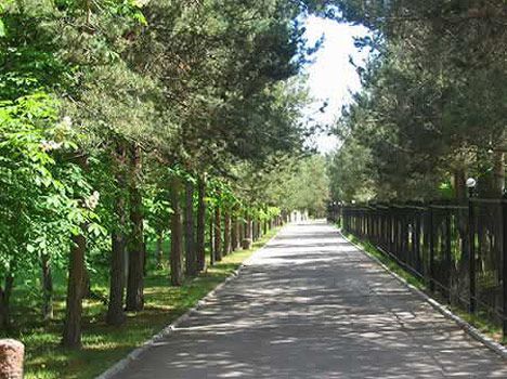 На территории здравницы растут хвойные деревья, плодовые, пирамидные тополя, цветы. Санаторий находится под охраной, а территория вокруг него всегда ухожена и благоустроена, что радует глаз постояльцев.