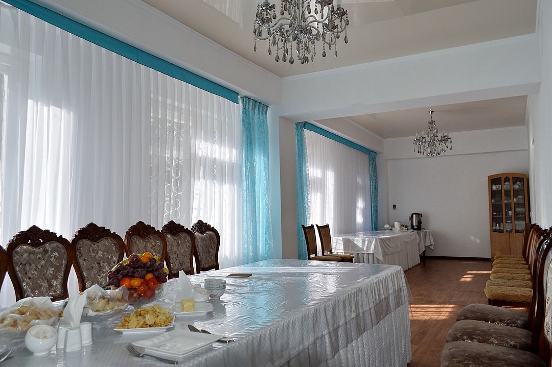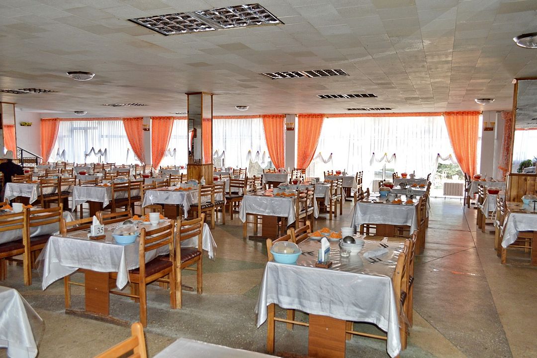 Всем отдыхающим в санатории предлагается полноценное трехразовое питание в столовой, расположенной в одном из корпусов. Перекусить туристы смогут и в двух кафе, действующих на территории санатория, где подают блюда европейской и киргизской кухонь.