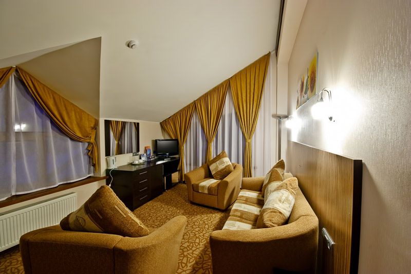 Пятиэтажный корпус отеля разместился всего в 300—500 метрах от горнолыжного склона. Жилой фонд включает в себя 52 номеров разной категории. В каждом номере предусмотрен индивидуальный санузел