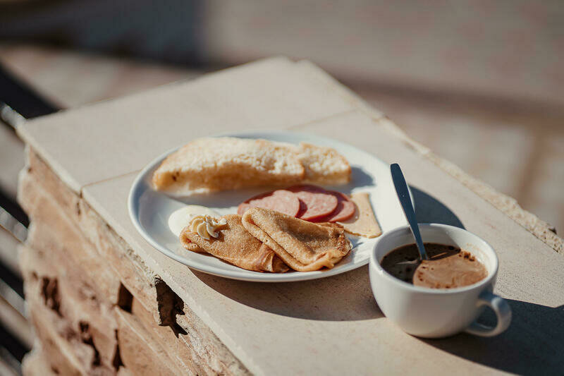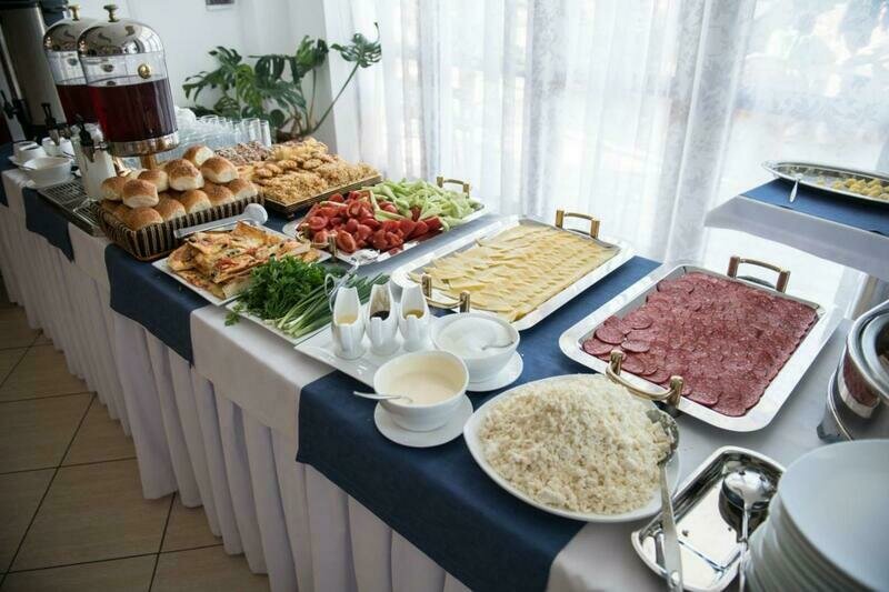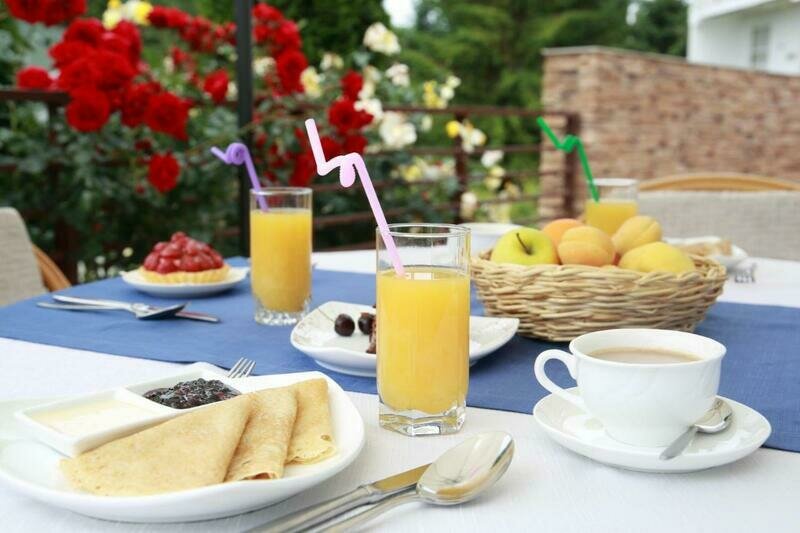 Своим гостям комплекс предлагает вкусные комплексные завтраки по системе «Шведский стол», которые подаются в столовой VIP-пансионата. Организовать свое питание туристы могут также в ресторане «Caprice» на первом этаже гостиничного комплекса, в ресторане «Бриз», расположенном на пляже или в барах, один из которых находится рядом с открытым бассейном.