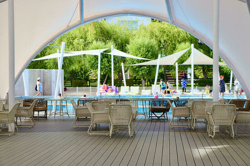 Тип бассейна: открытый бассейнРядом с бассейном: душ, шезлонги, спасатель, бар у бассейнаГлубина: 144 смСтоимость