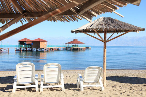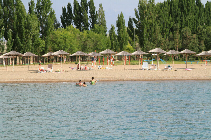 Поездом до ж/д вокзала г. Балыкчи, далее на личном транспорте или такси.