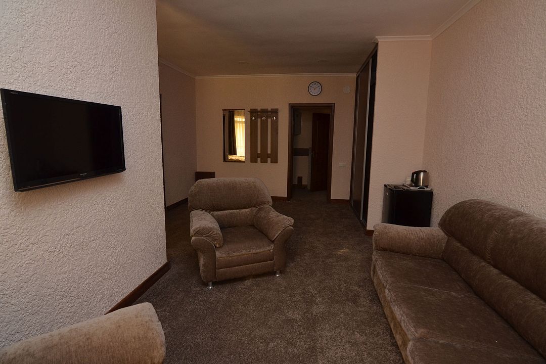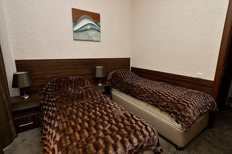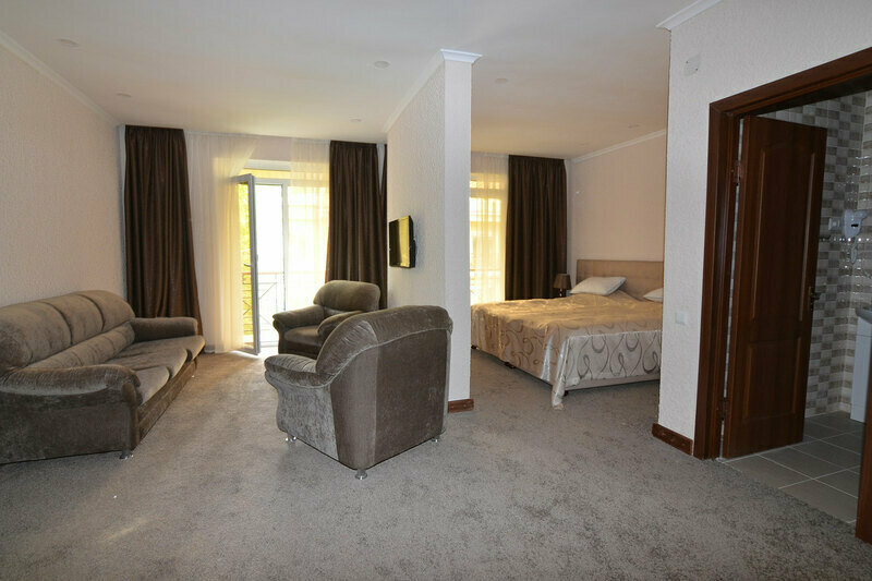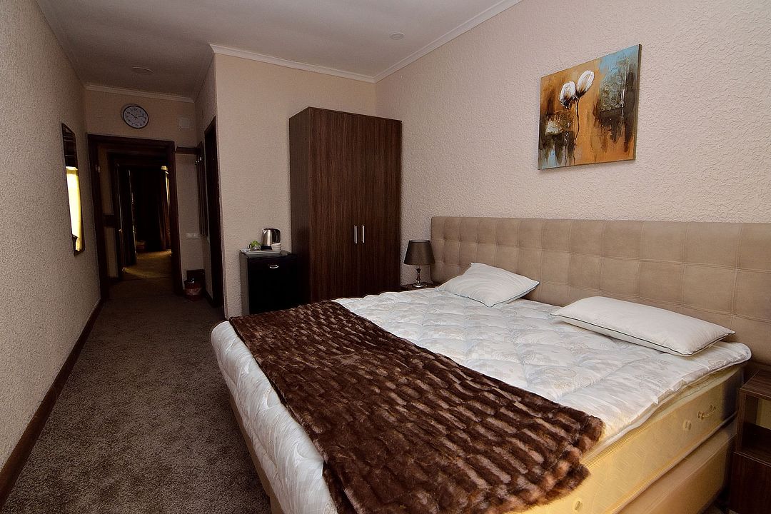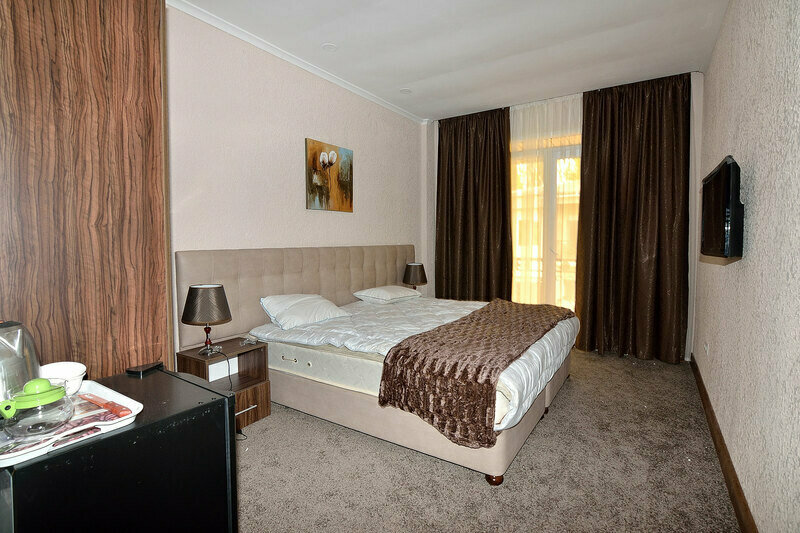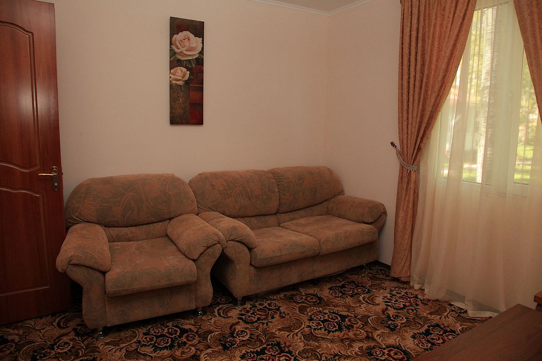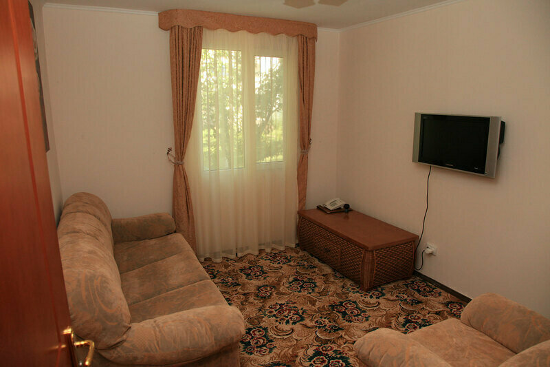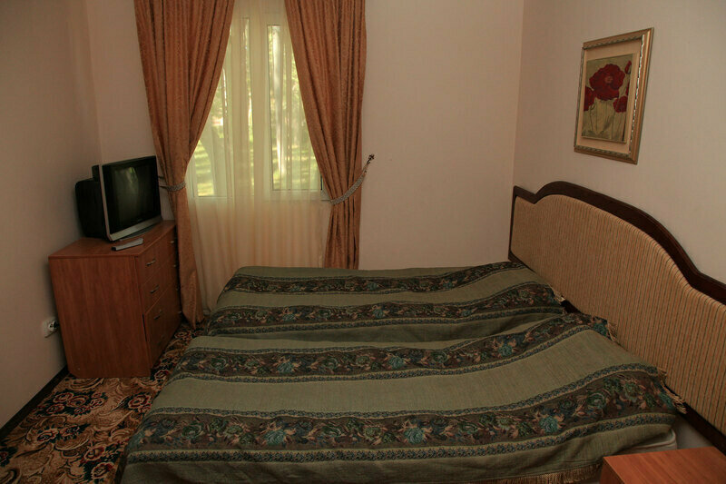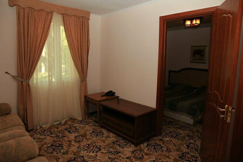 Пансионат, включающий в себя два трехэтажных корпуса и отдельно стоящие коттеджи, занимает зеленую благоустроенную территорию с живописными тянь-шанскими елями. Уютные номера оснащены всем необходимым для комфортного проживания. Везде предусмотрен индивидуальный санузел с душевой кабиной, горячей и холодной водой,