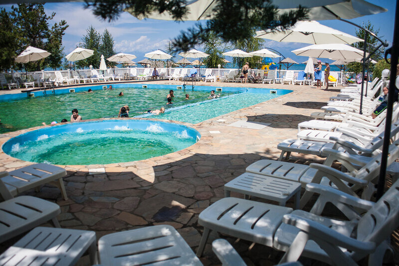 Тип бассейна: открытый бассейнВода в бассейне: бассейн с минеральной водой, подогреваемый бассейнРядом с бассейном: шезлонги, зонтикиРазмеры: 18 x 20 мПлощадь: 360 м²Бассейн с джакузи и детской зоной для купания.