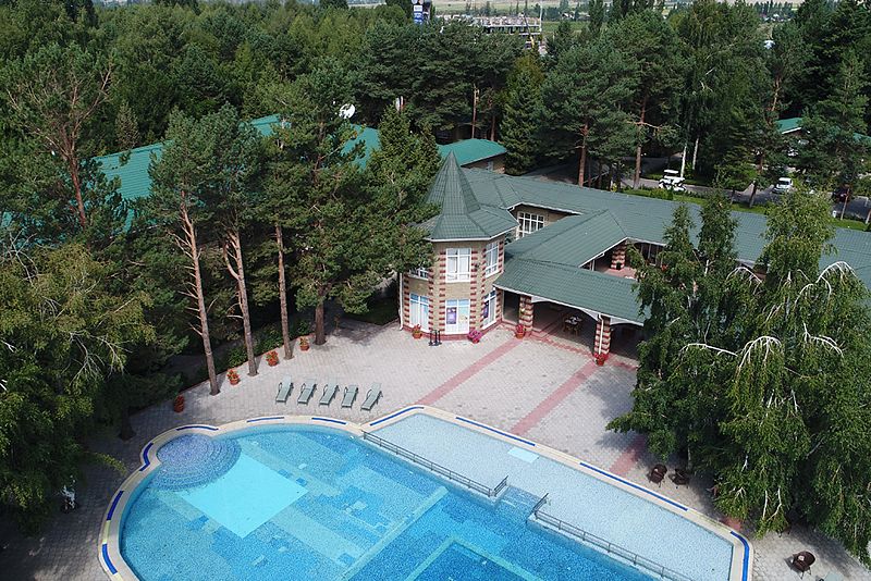 БесплатноЛетний бассейн с обогревом возле административного корпуса