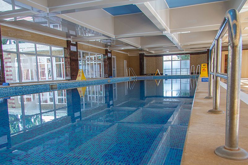 В крытом бассейне имеется сауна и отдельный маленький бассейн для самых маленьких гостей. Детям разрешается купаться только под присмотром взрослых. Взрослым заходить в детский бассейн не разрешается.