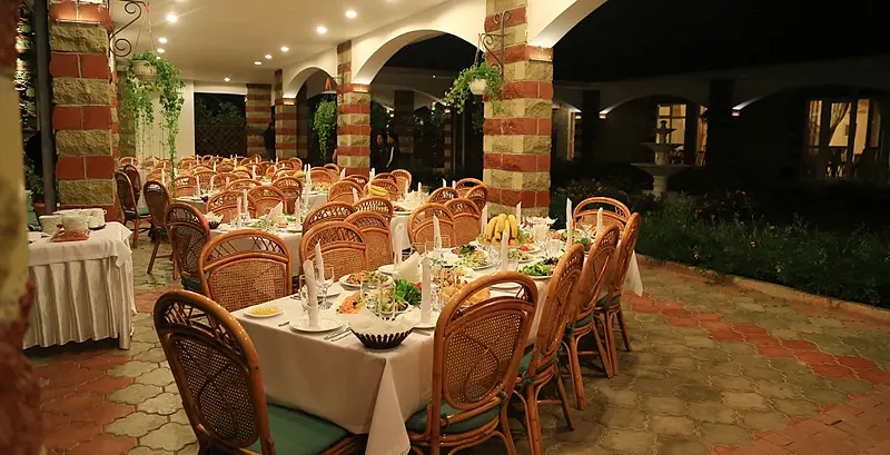 Ресторан 1 находится возле бассейна, рядом с административным центром. Ощущение уюта и комфорта создает интерьер ресторанов выдержанный в теплых тонах, в летний в сезон столики накрываются на террасах.