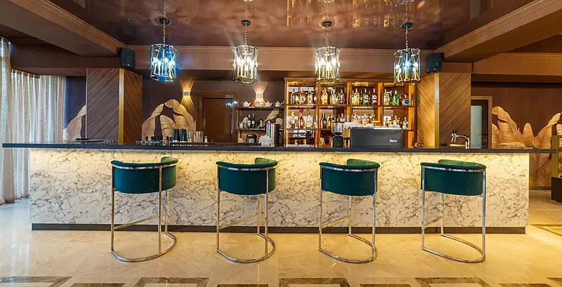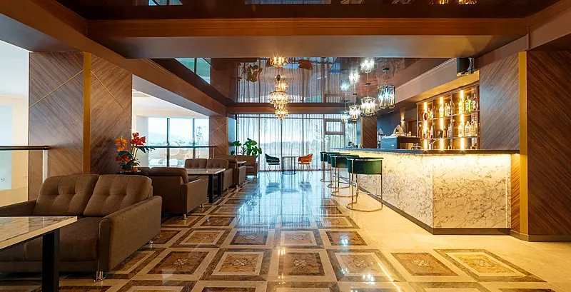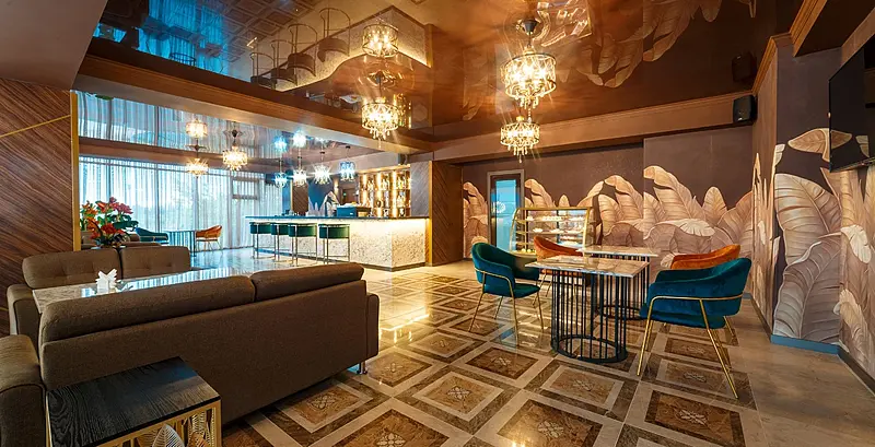 В здании административного центра на втором этаже. Более 20 видов кальяна, большой ассортимент элитных алкогольных напитков и коктейлей, десерты, элитные сорта чая и кофе, кубинские и доминиканские сигары. Изысканная кухня и вкусные завтраки — для самых требовательных гурманов.