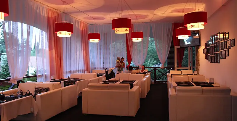 Читать полностьюРесторан 2 находится возле корпусов 1 и 2, находится в парковой зоне, перед рестораном зеленый газон с розами и туями. В архитектура ресторана выполнена в европейском стиле. Благодаря раздвижным дверям, просторный зал быстро трансформируется в два зала. С просторных террас ресторана открывается красивый вид на озеро.
