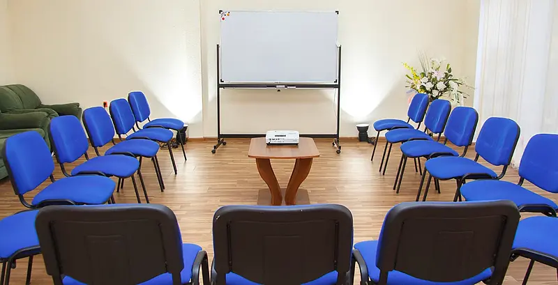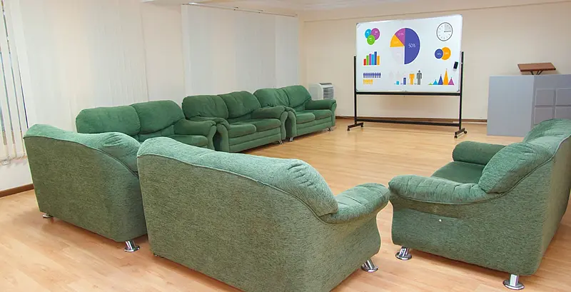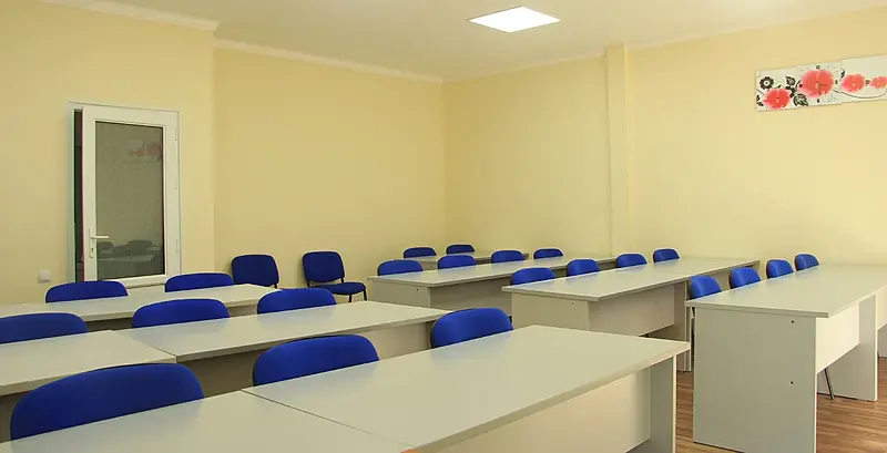 Классная комната находится возле административного комплекса. Максимальная вместимость при рассадке класс 28 человек.