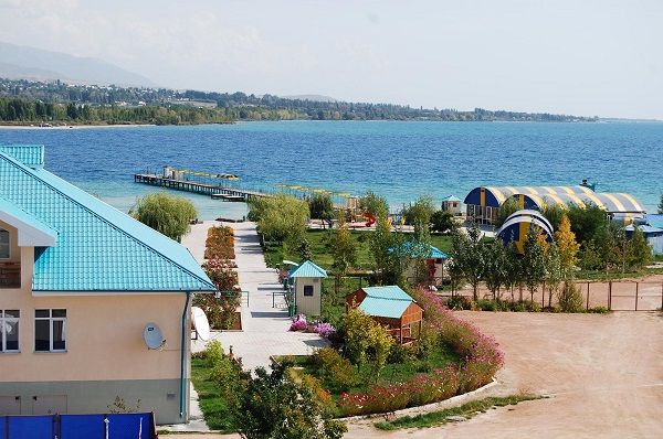 Поездом до ж/д вокзала г. Балыкчи, далее на автобусе №401 до остановки «Автовокзал Чолпон-Ата», далее пройти 2,02 км до пансионата.