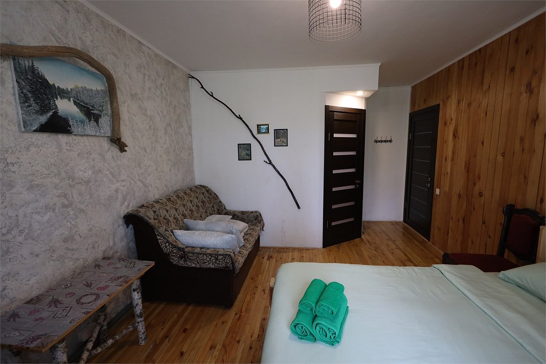 К услугам гостей — комфортабельные номера категории «Стандарт», каждый из которых оформлен в неповторимом стиле, создавая атмосферу уюта и спокойствия. В номерах царит аромат натурального дерева, способствующий расслаблению и глубокому сну. Здесь есть все необходимое для комфортного отдыха, а чистота и порядок гарантируют вам приятное времяпровождение.