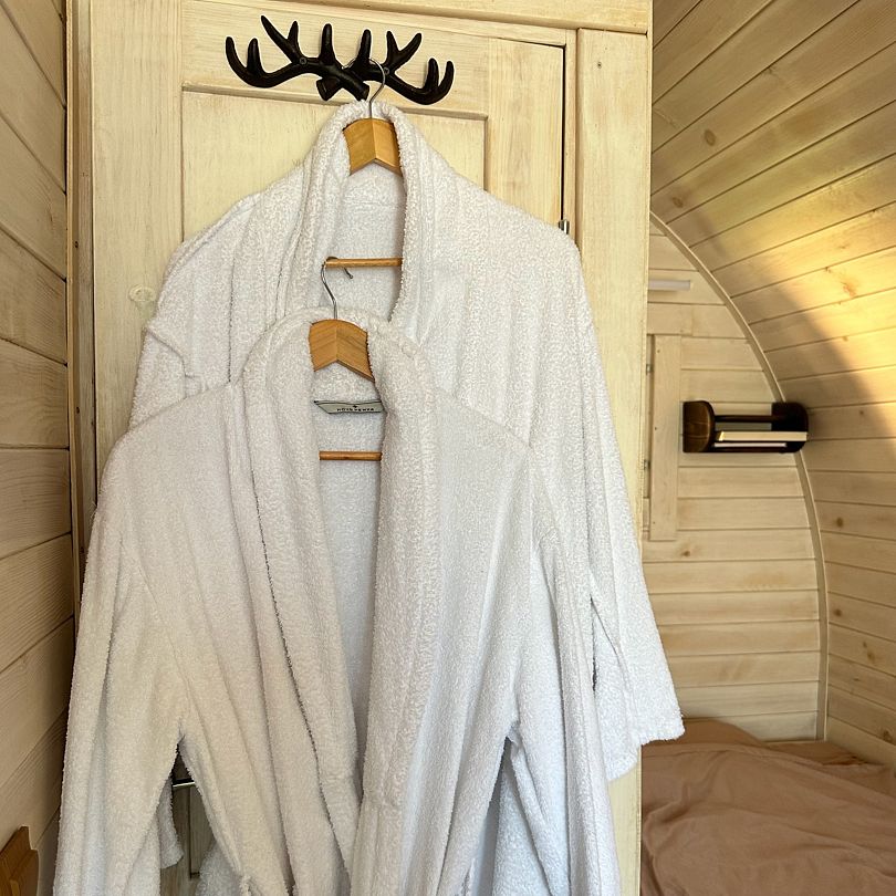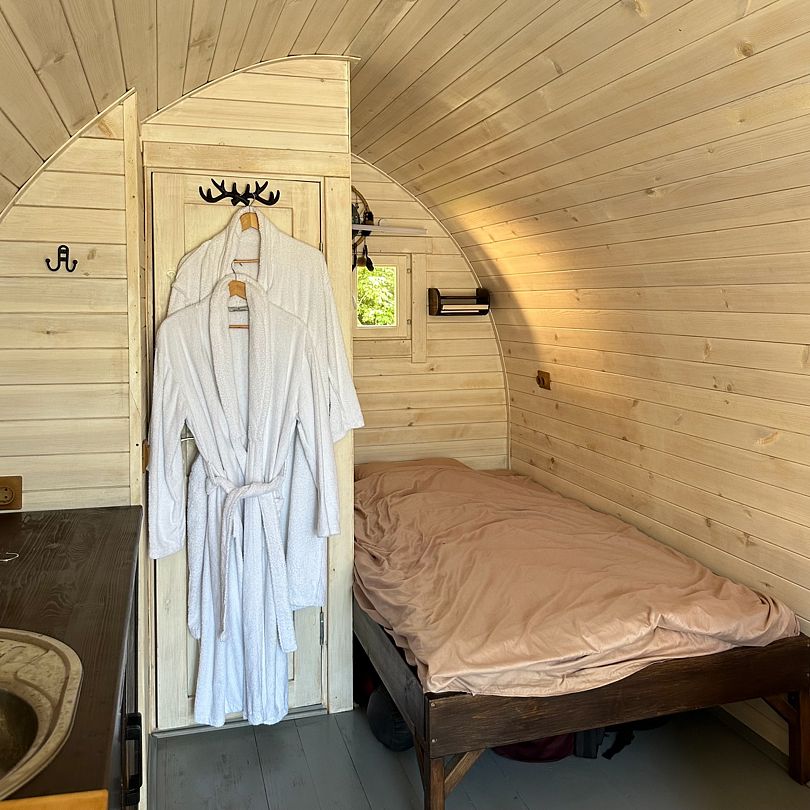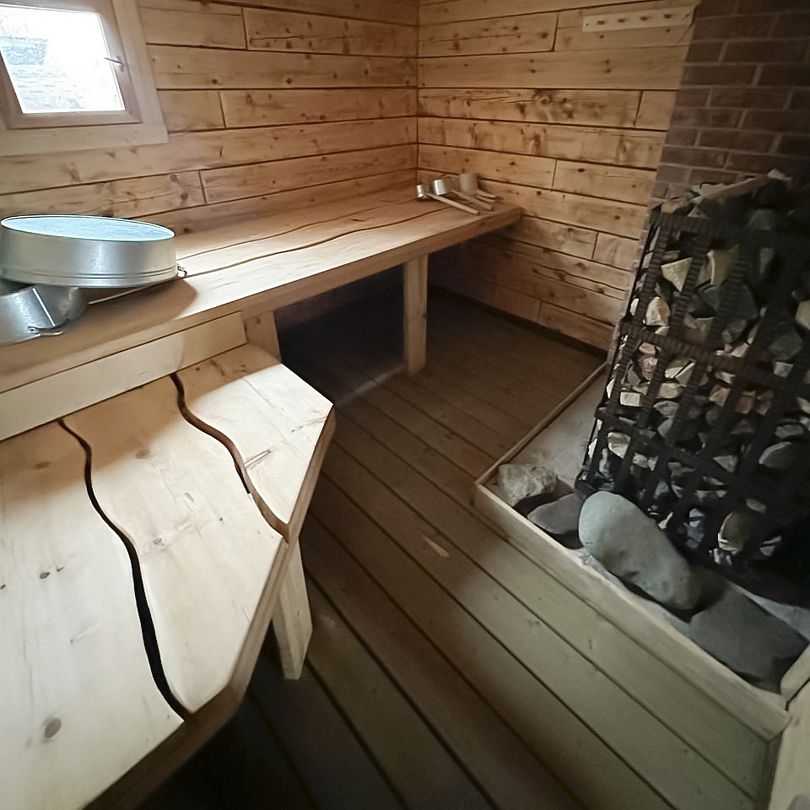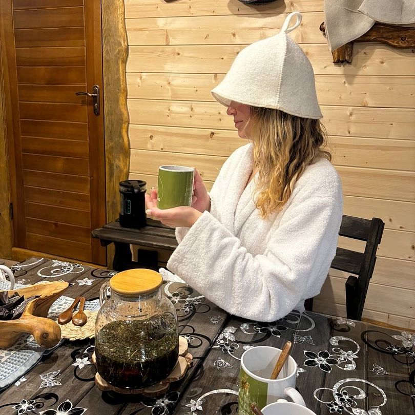 Для тех, кто предпочитает уединение, есть уютный летний домик, идеально подходящий для двоих. В нем есть все необходимое для комфортного проживания: от чайника до мягких халатов. А настоящая русская баня на дровах, вмещающая до семи человек, станет идеальным местом для парения и восстановления. Просторная парилка из кедра и насыщенный пар создадут идеальные условия для полного расслабления.