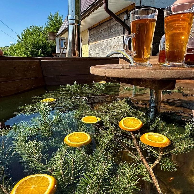 «Алтай Баня» приглашает вас насладиться незабываемыми впечатлениями от отдыха в сибирском банном чане, расположенном под открытым небом рядом с баней. Вода в чане, нагретая до комфортной температуры, позволяет вам ощутить блаженство купания, которое напоминает успокаивающее воздействие горячих источников.