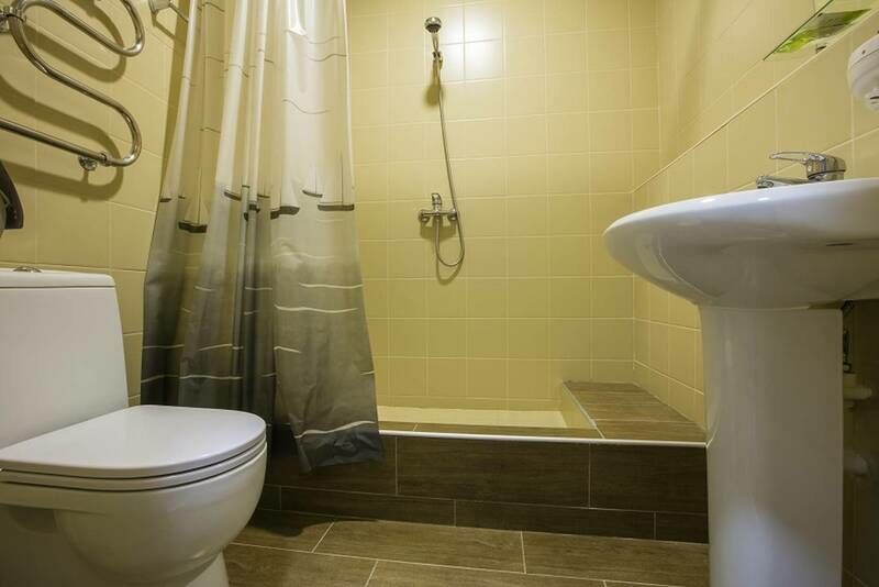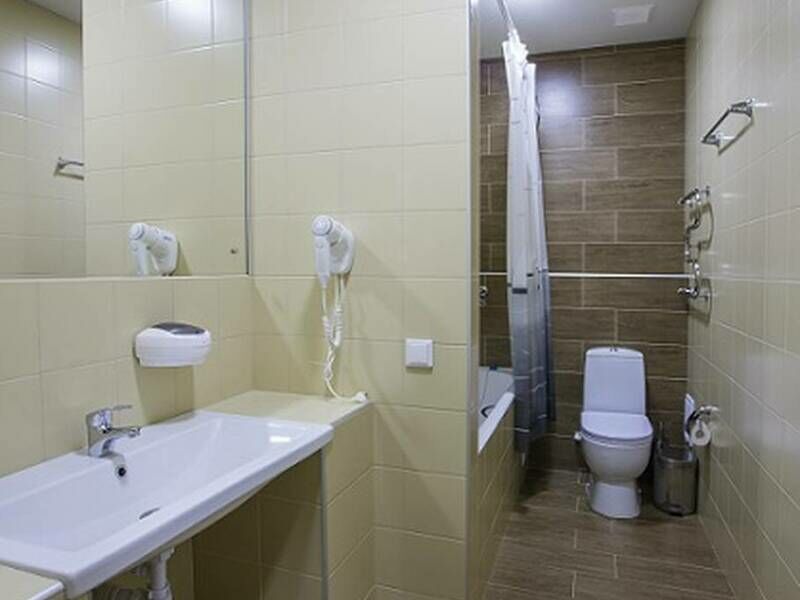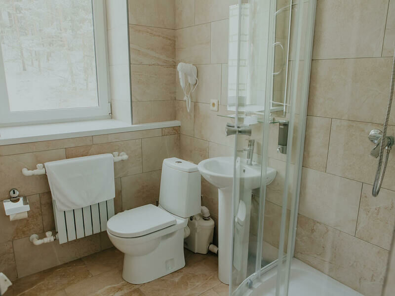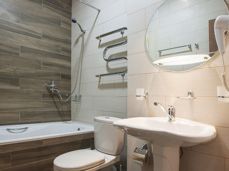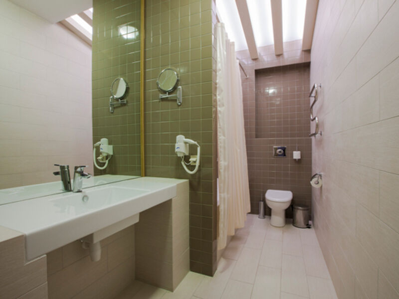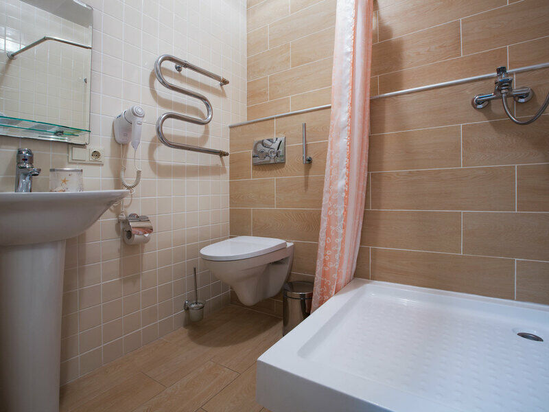 Ванная комната оснащена душевой кабиной, раковиной, WC, феном. Оформление номера располагает к длительному отдыху вдали от шума и суеты. Возможно двухместное размещение.