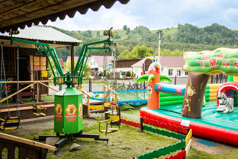 Для детей предусмотрена специальная зона с батутом и надувным городком.
