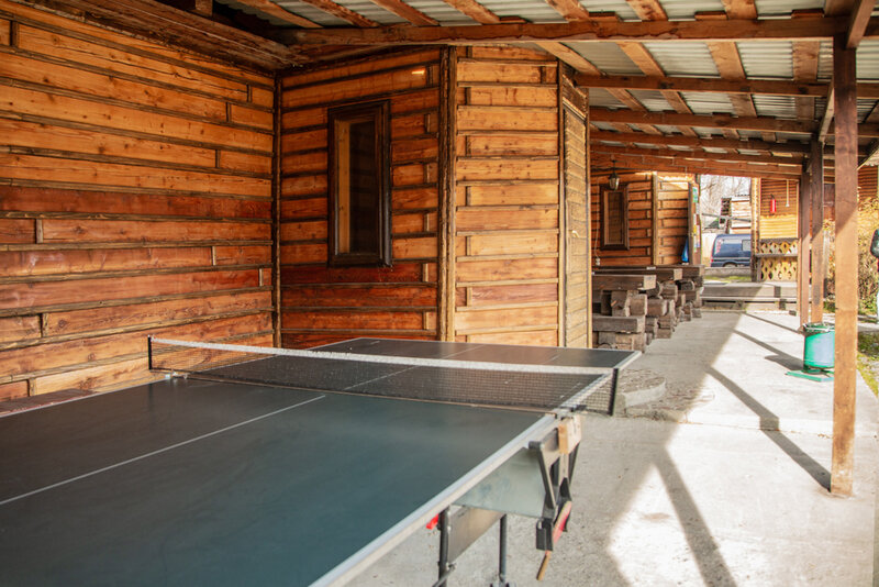 База предлагает своим постояльцам комфортабельные номера, в которых есть все необходимое для проживания: удобная мебель, холодильник, гигиенические принадлежности, телевизор. В оформлении комнат использовано множество деревянных деталей, которые создают атмосферу уютного охотничьего домика. Из окон открываются чудесные виды на окружающий базу парк, по которому Вы можете прогуляться.