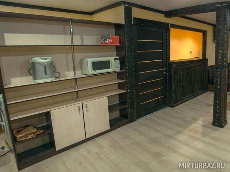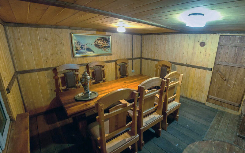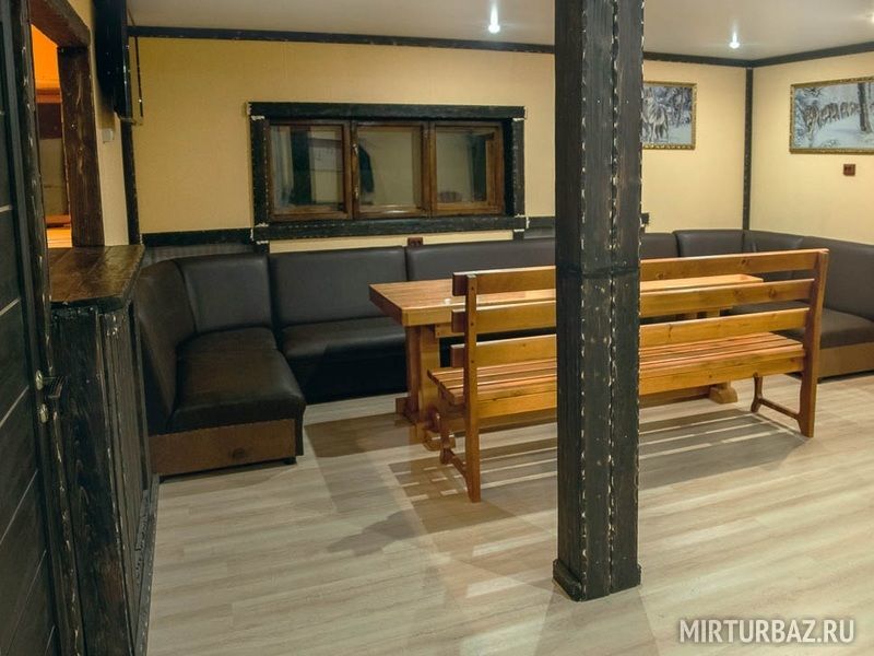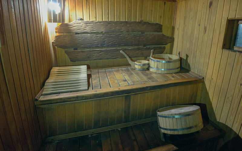 Гости могут попариться в сауне, где помимо самой парильной имеется комната отдыха со столом и стульями. При желании гости могут испить чай из самовара или заказать угощения.