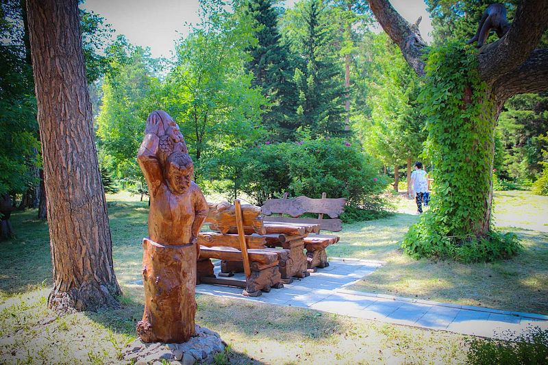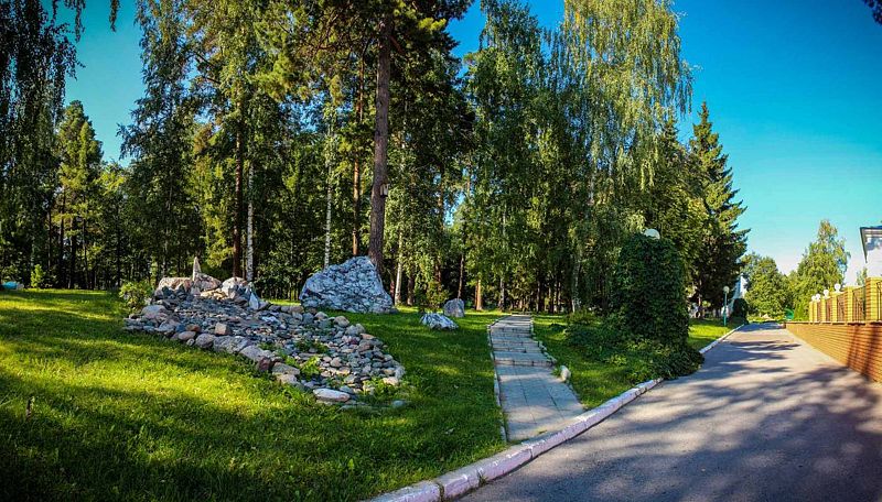 На территории санатория есть всё для активного отдыха: аллеи для прогулок, фонтаны и искусственные водопады, живой уголок с белками и бурыми медведями.