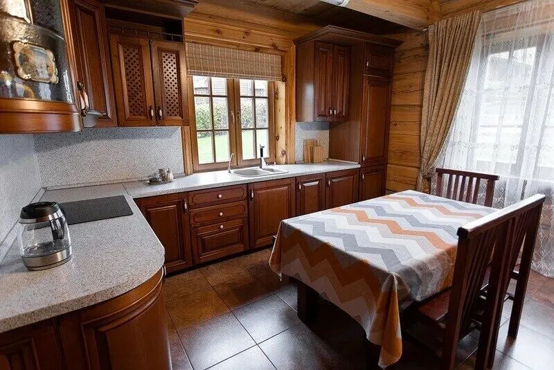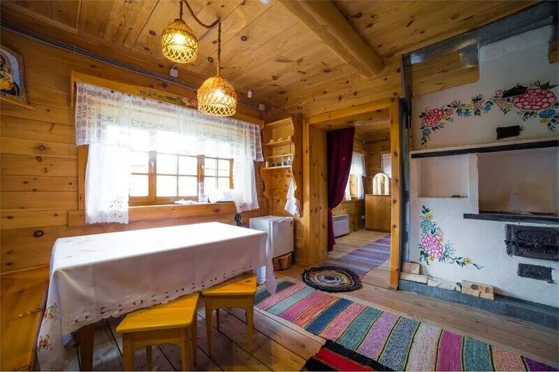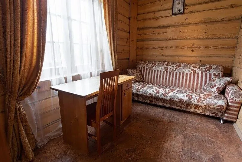 Одноэтажный дом из хвойных пород дерева, в старорусском стиле с печью, которая согревает своим теплом и создает особый уют. Пространство дома разделено на гостиную, спальную комнату и просторные сени.