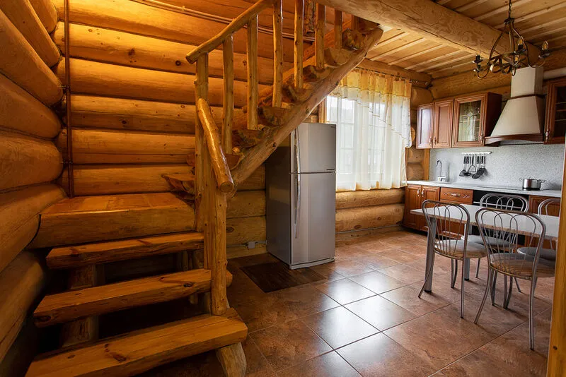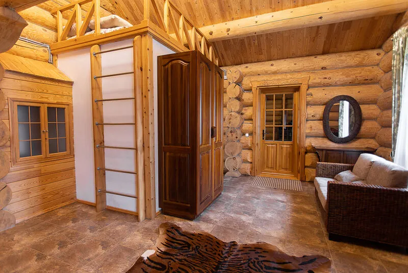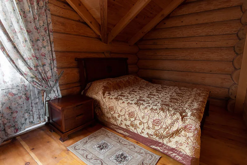 Двухэтажный коттедж из массива кедра, идеально подходит для семейного отдыха. На первом этаже: уютная гостиная с мягкой зоной отдыха, оборудована кухонная зона. На втором этаже две спальни с выходом на застекленную лоджию с мебелью из ротанга.