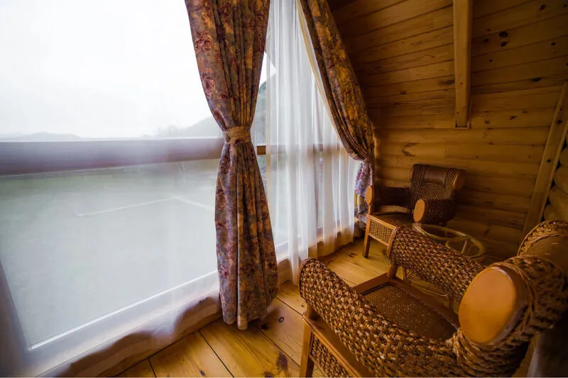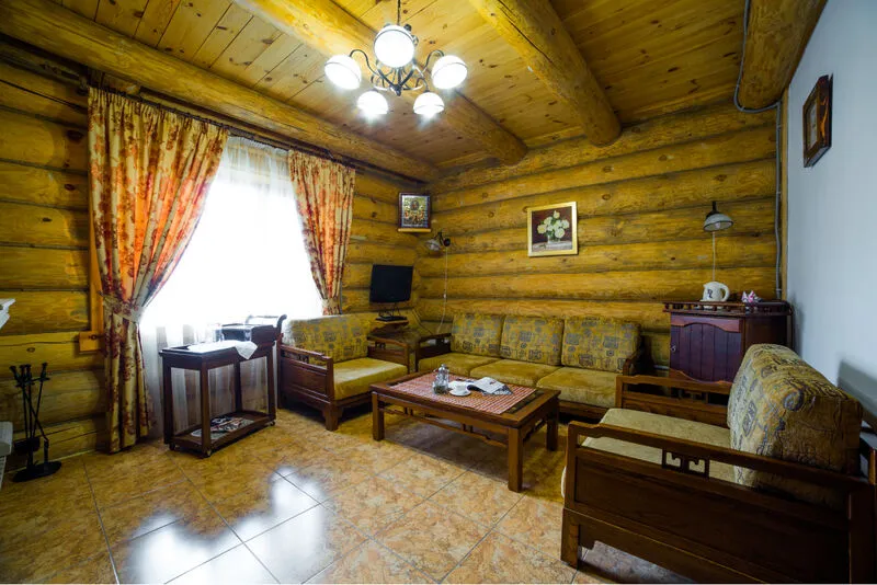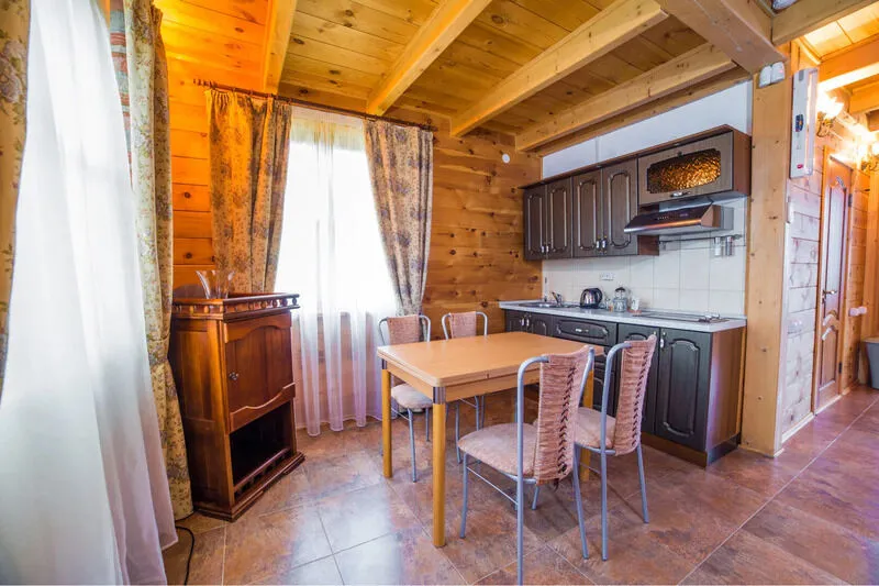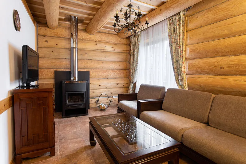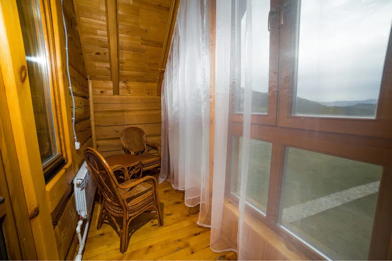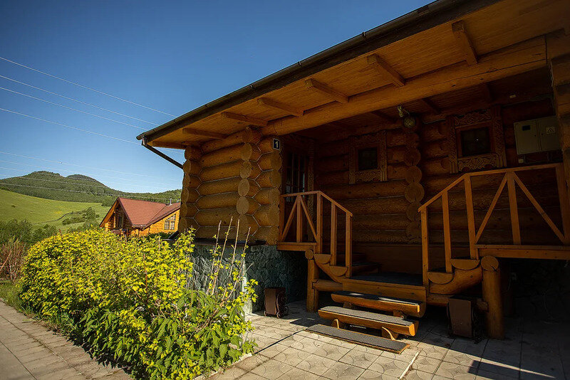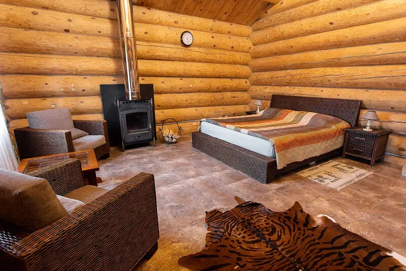 Гостям комплекса предлагаются 13 уютных коттеджей из массива дерева, настоящий камин и вид на горы, озёра и чистое небо. У каждого дома своя площадь, этажность и комплектация.